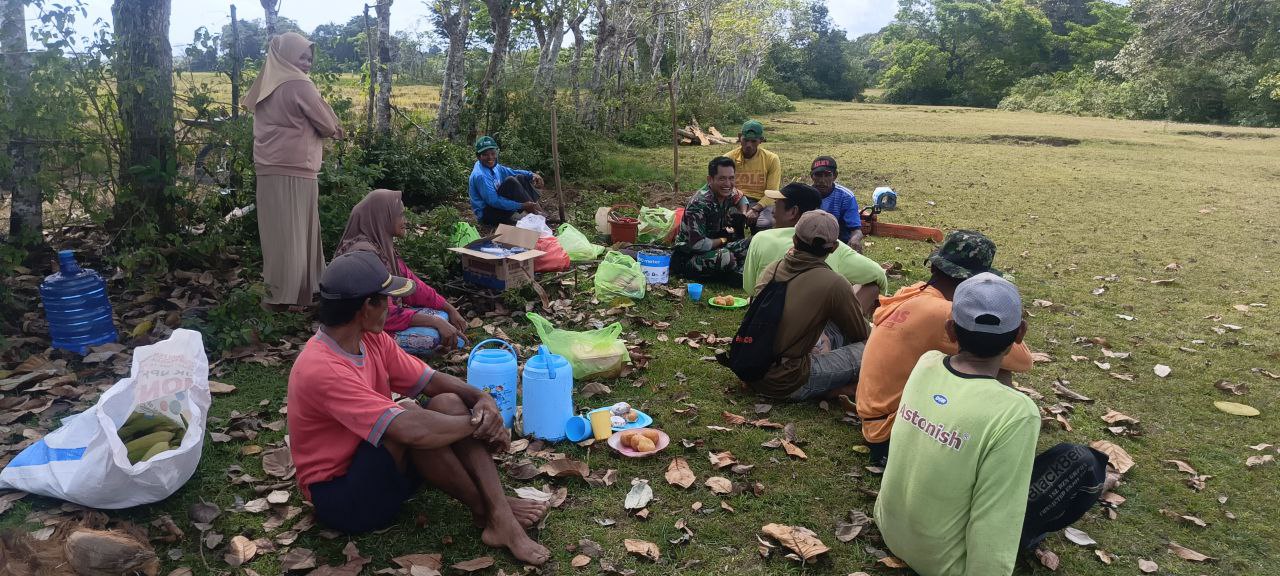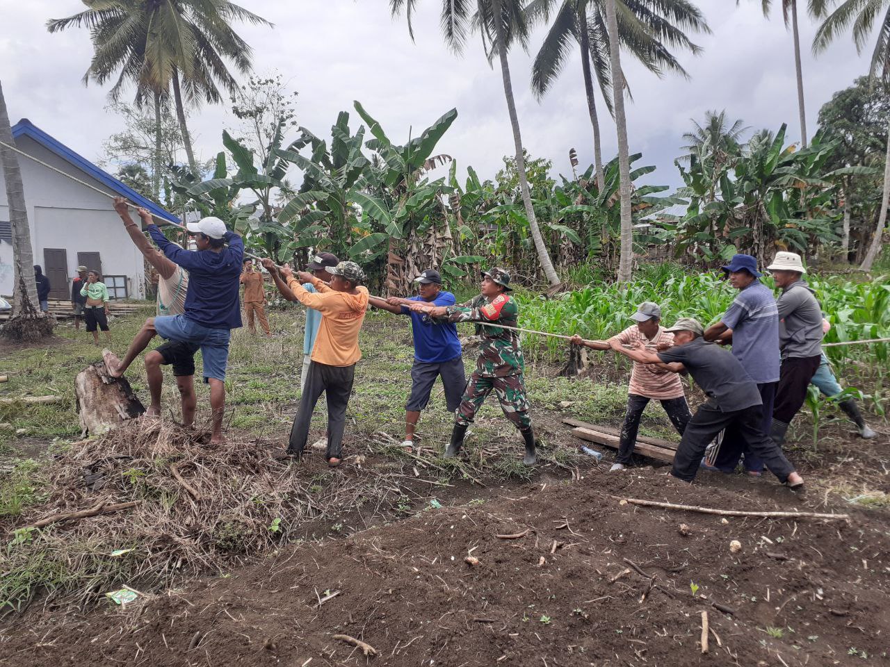 Kemanunggalan Di Desa Carigading : Babinsa Koramil 1407-06/Awangpone Gerakkan Semangat Gotong Royong Bersihkan Desa