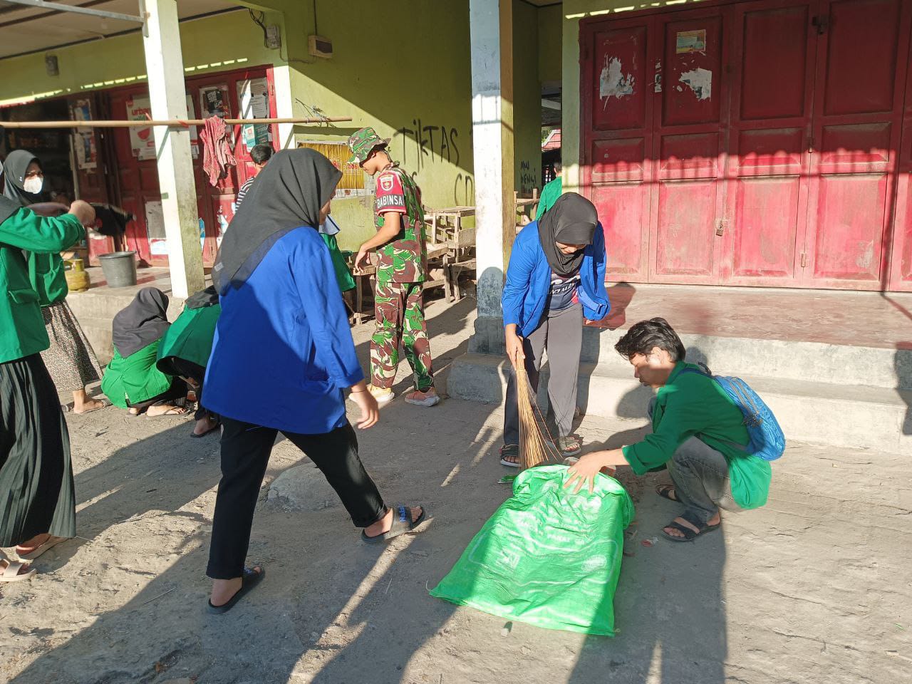 Kemanunggalan Di Desa Carigading : Babinsa Koramil 1407-06/Awangpone Gerakkan Semangat Gotong Royong Bersihkan Desa