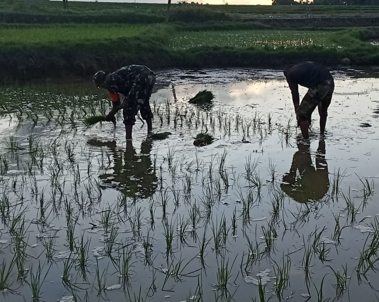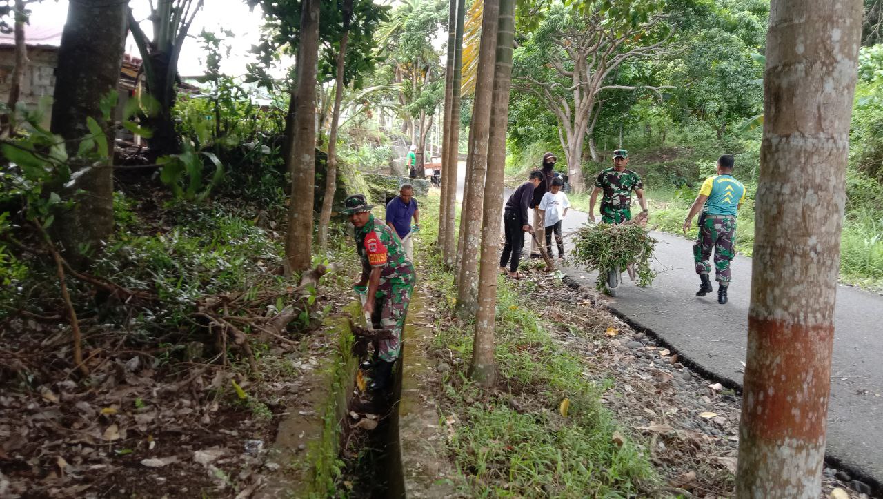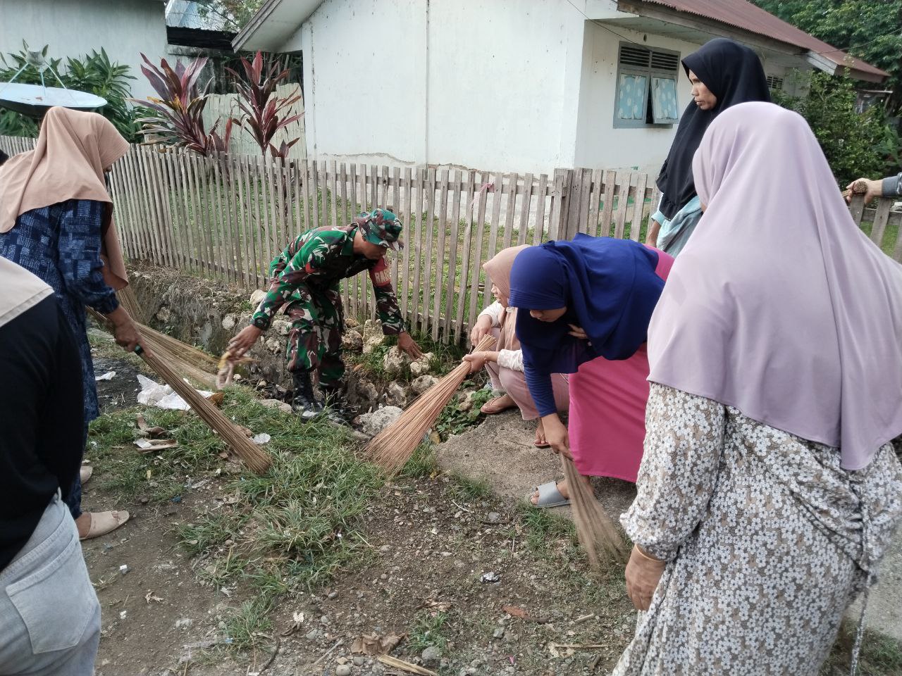 TNI & POLRI Budayakan Gotong Royong, Babinsa Koramil 1407-09/Lapri Ajak Warga Patangkai Percantik Alun-Alun Desa