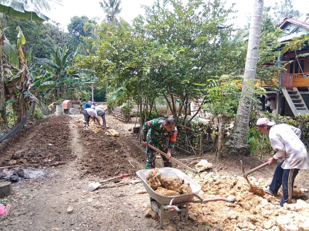 Tak Kasih Kendor! Babinsa Koramil 1407-15/Mare Pimpin Aksi “Bedah Jalan” Di Dusun Saungeng Demi Keselamatan Warga