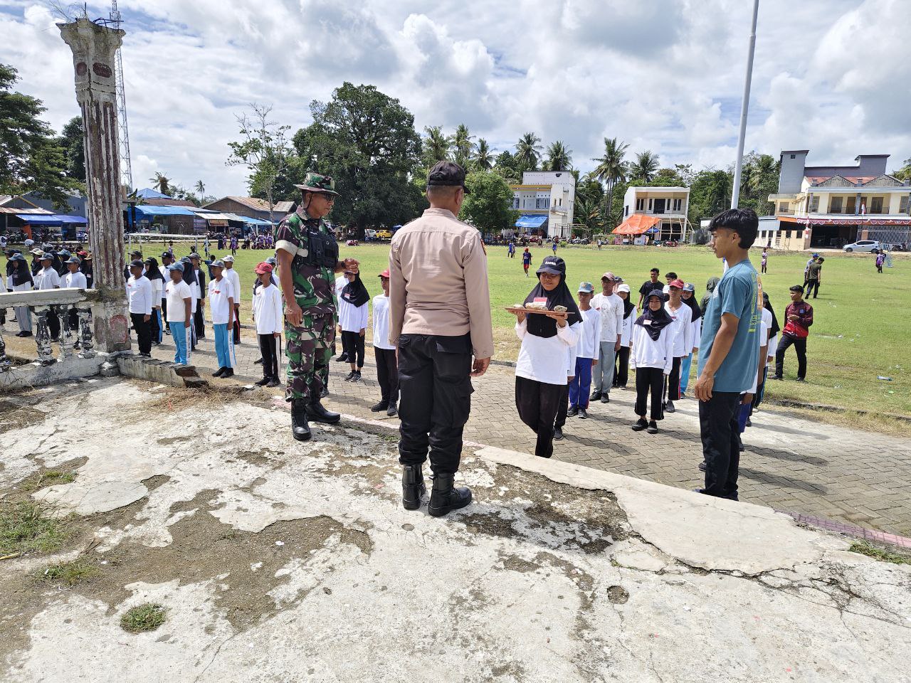 TNI & POLRI Bentuk Karakter Generasi Muda, Babinsa Libureng Kodim 1407/Bone Latih Baris-Berbaris Murid SD