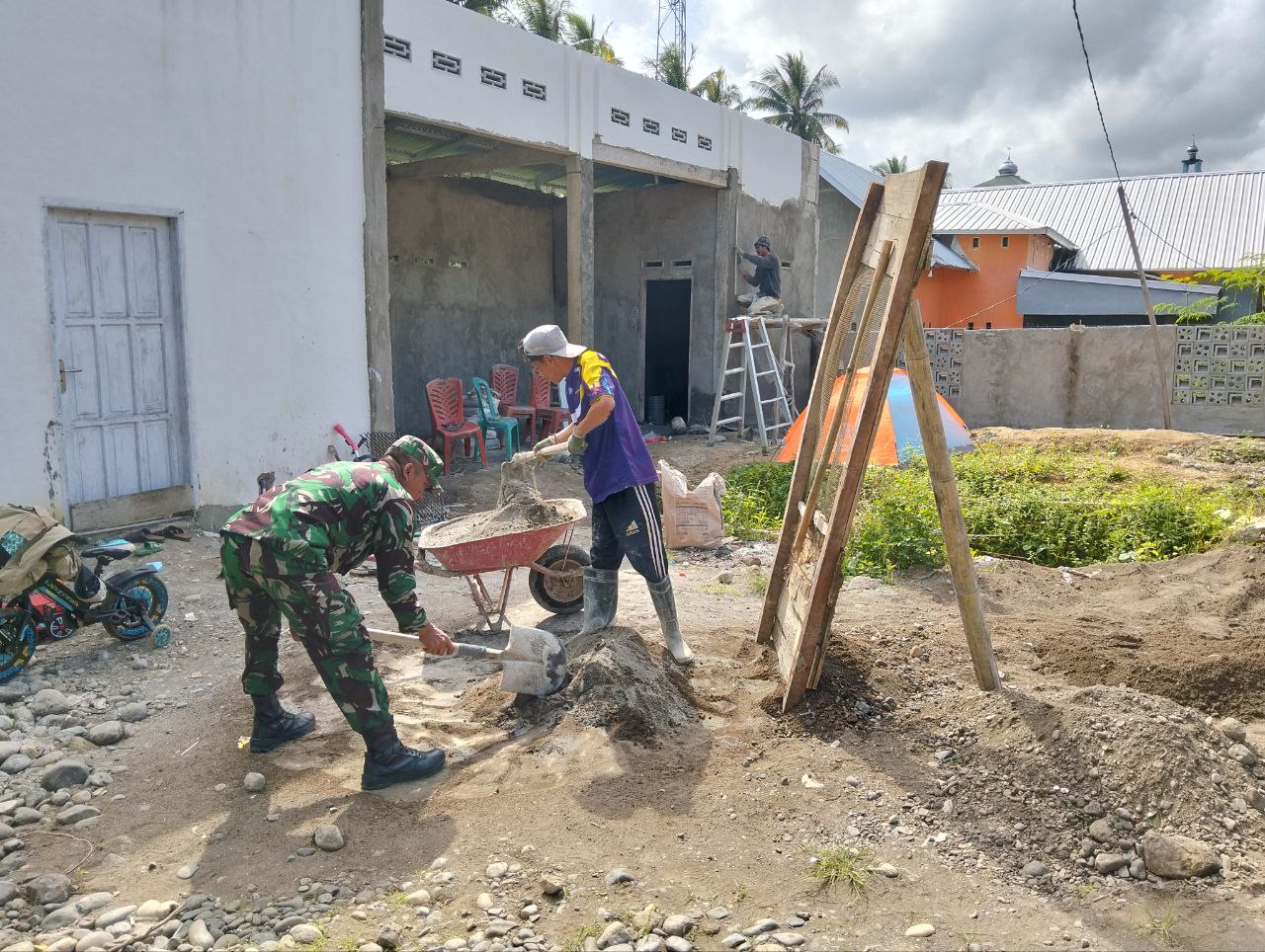Pastikan Tanpa Cacat, Danramil 1407-04/Tellusiatinge Dampingi Forkopimcam Cek Langsung Fisik Dekker Di Dusun 3