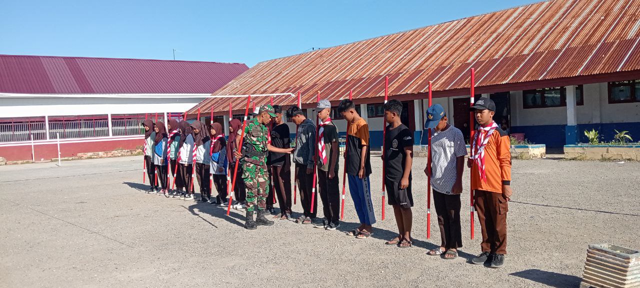 Bentuk Karakter Generasi Muda, Babinsa Libureng Kodim 1407/Bone Latih Baris-Berbaris Murid SD