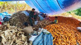 Bantu Petani Panen Jagung, Babinsa Koramil 1407-02/Dua Boccoe Ringankan Pekerjaan Warga Sangrangeng