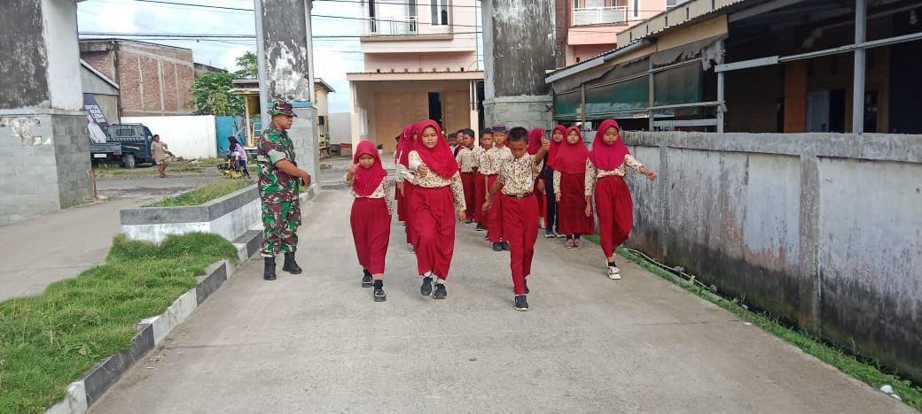 Bentuk Karakter Generasi Muda, Babinsa Libureng Kodim 1407/Bone Latih Baris-Berbaris Murid SD