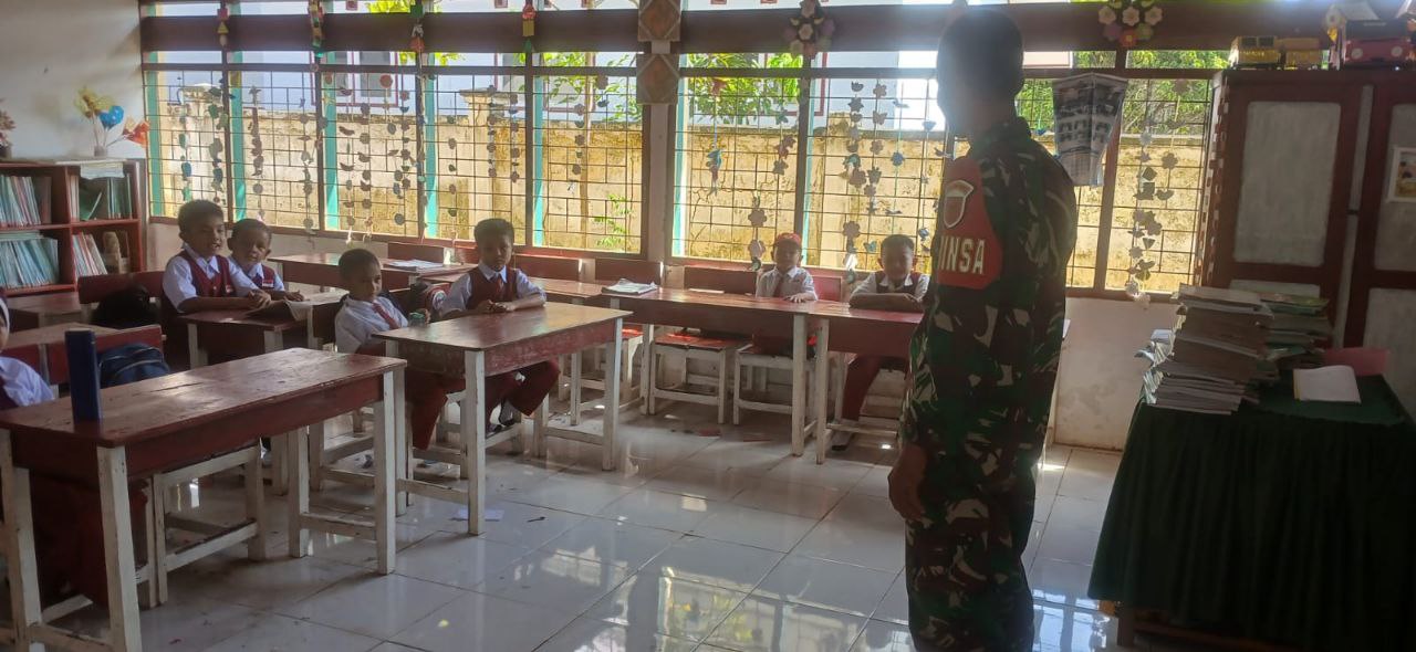 Babinsa Koramil 02/Dua Boccoe Kodim 1407/Bone Dampingi Penyaluran Makan Bergizi Gratis Di Wilayah Binaan