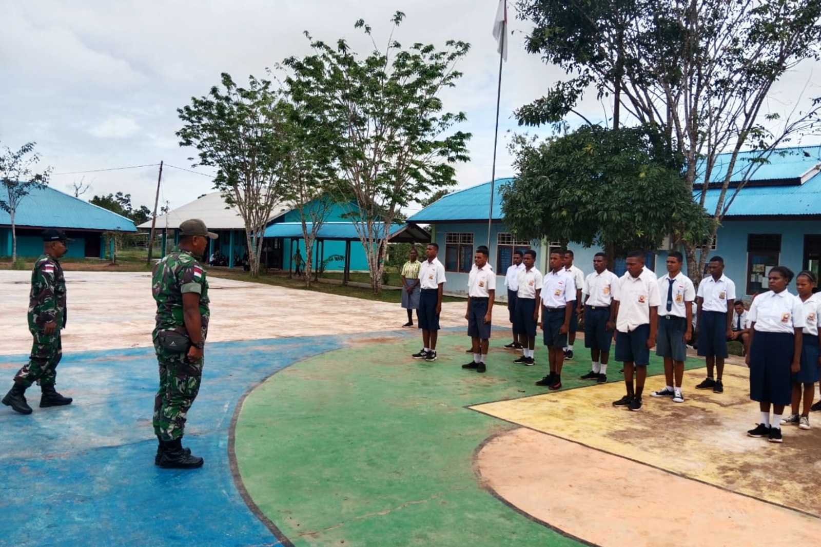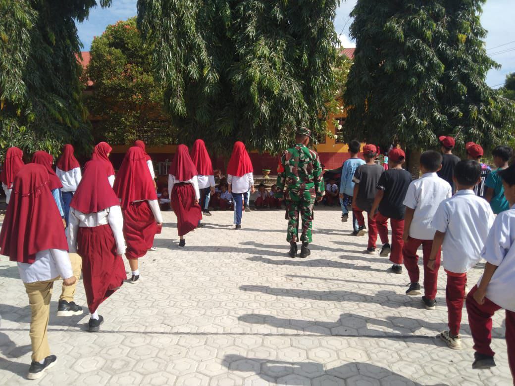 Babinsa Koramil 02/Dua Boccoe Kodim 1407/Bone Dampingi Penyaluran Makan Bergizi Gratis Di Wilayah Binaan