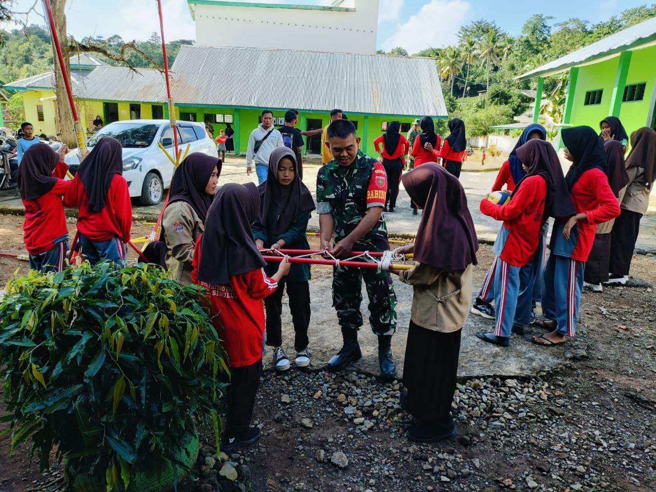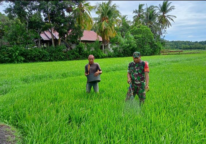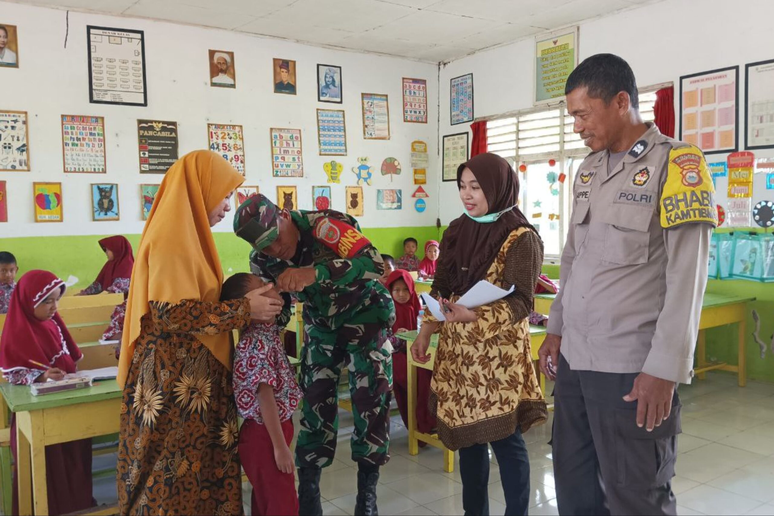 Babinsa Koramil 02/Dua Boccoe Kodim 1407/Bone Dampingi Penyaluran Makan Bergizi Gratis Di Wilayah Binaan