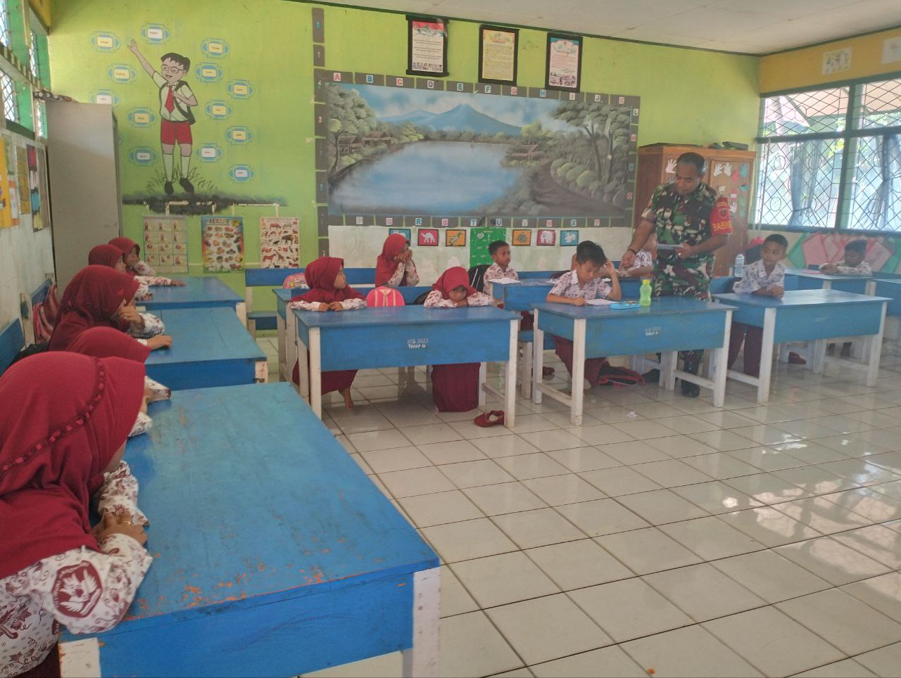Babinsa Koramil 02/Dua Boccoe Kodim 1407/Bone Dampingi Penyaluran Makan Bergizi Gratis Di Wilayah Binaan