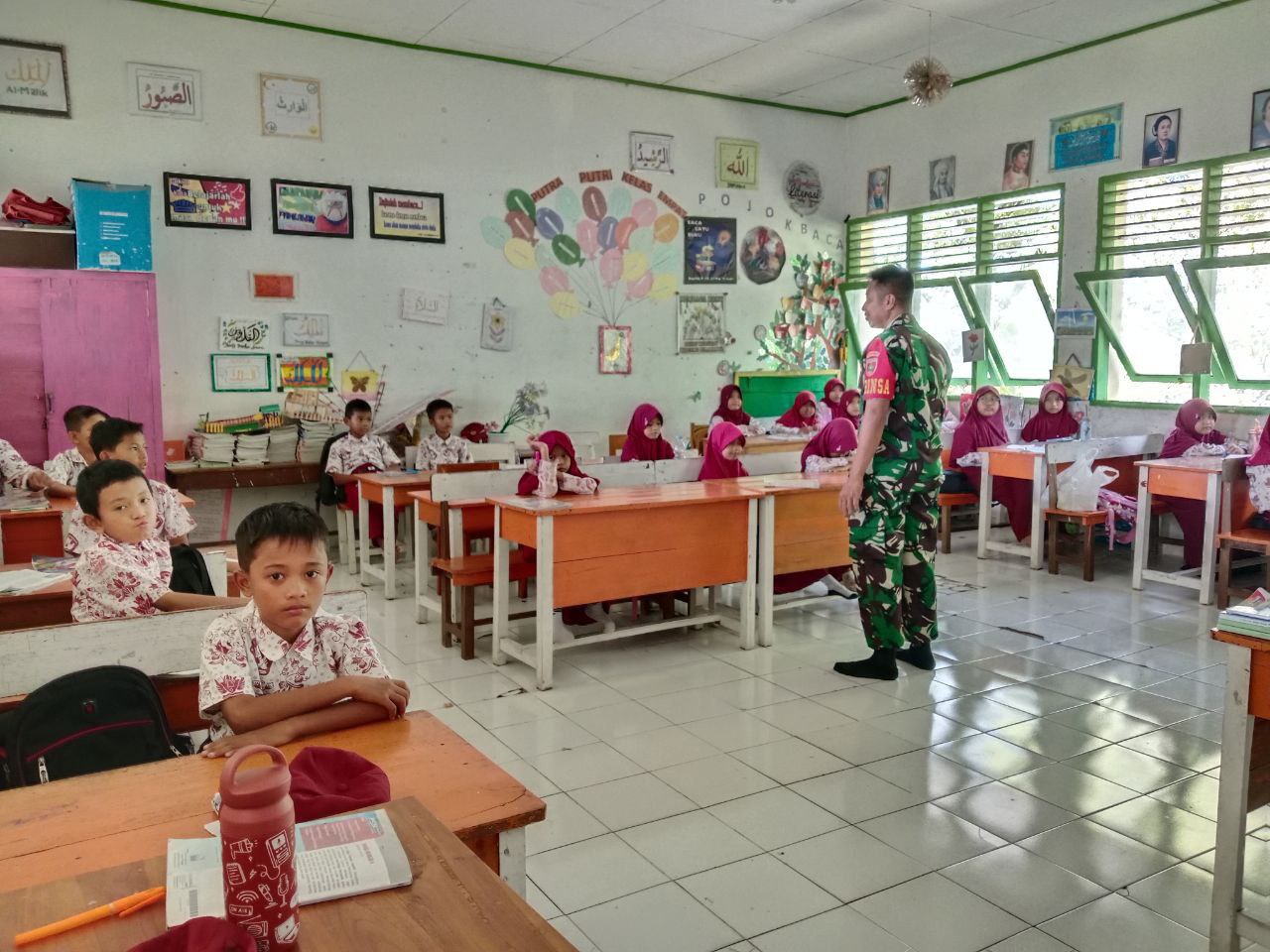 Babinsa Koramil 02/Dua Boccoe Kodim 1407/Bone Dampingi Penyaluran Makan Bergizi Gratis Di Wilayah Binaan