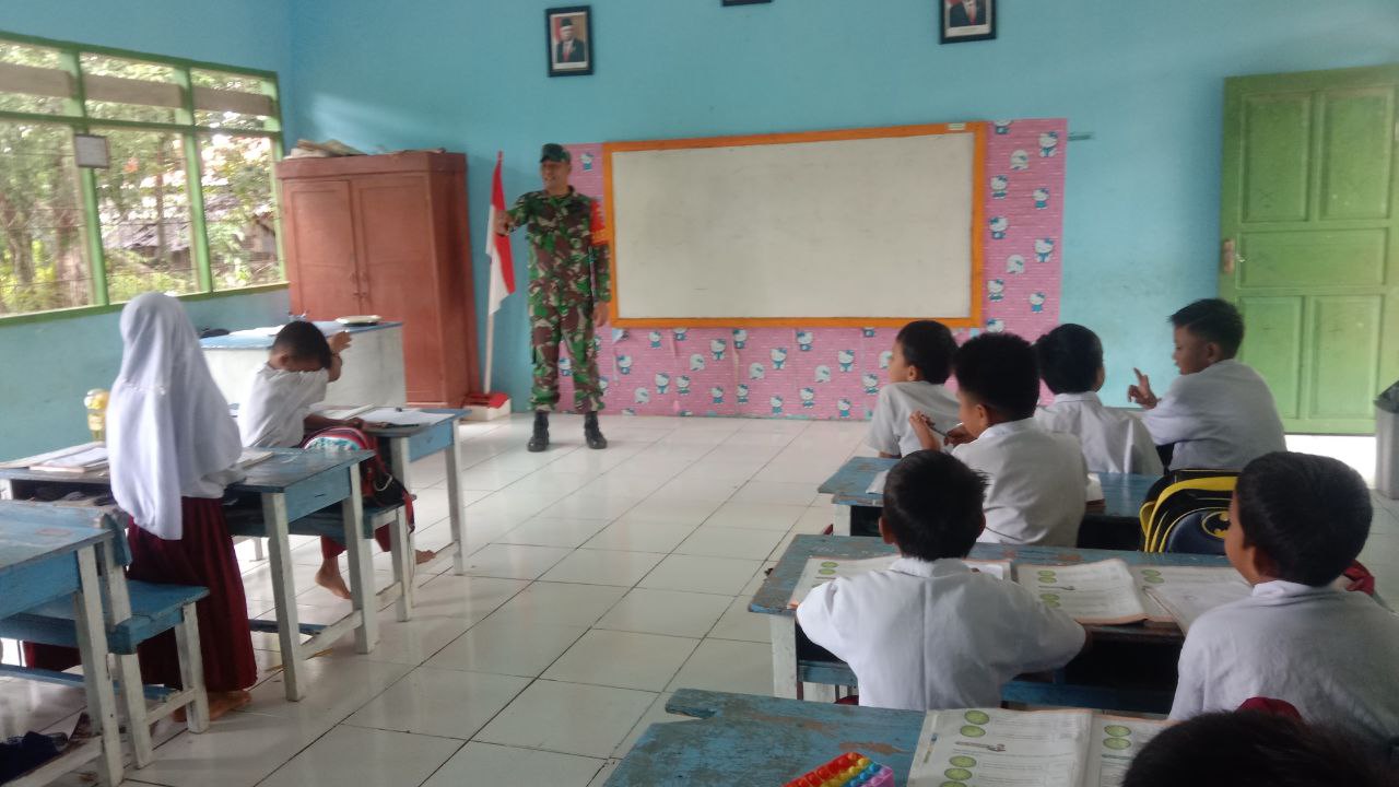 Babinsa Koramil 02/Dua Boccoe Kodim 1407/Bone Dampingi Penyaluran Makan Bergizi Gratis Di Wilayah Binaan