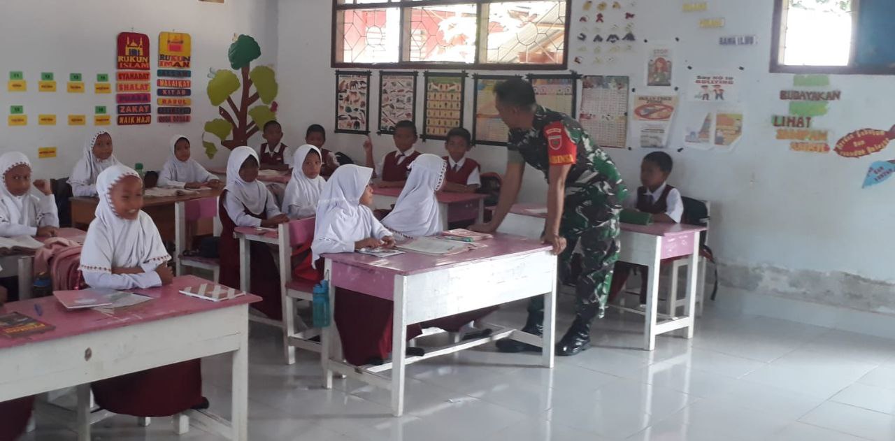 Babinsa Koramil 02/Dua Boccoe Kodim 1407/Bone Dampingi Penyaluran Makan Bergizi Gratis Di Wilayah Binaan