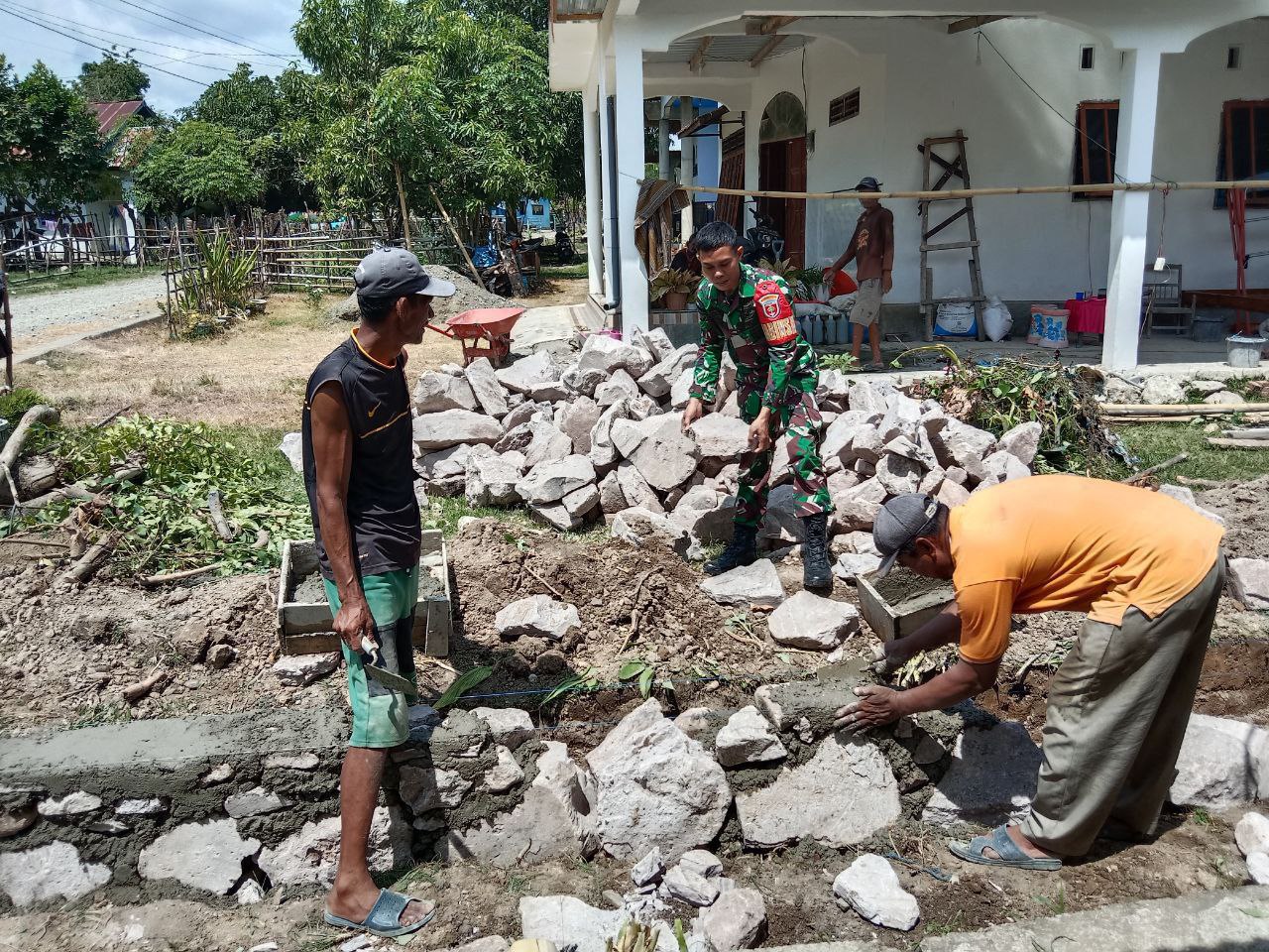 Pastikan Tanpa Cacat, Danramil 1407-04/Tellusiatinge Dampingi Forkopimcam Cek Langsung Fisik Dekker Di Dusun 3