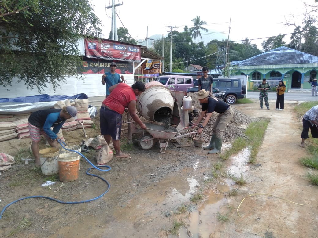 TNI & POLRI Budayakan Gotong Royong, Babinsa Koramil 1407-09/Lapri Ajak Warga Patangkai Percantik Alun-Alun Desa