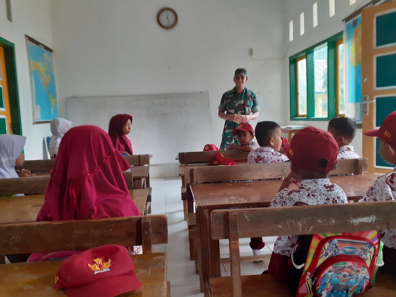 Bentuk Karakter Generasi Muda, Babinsa Libureng Kodim 1407/Bone Latih Baris-Berbaris Murid SD
