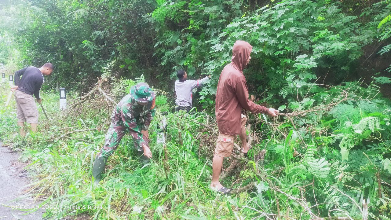 TNI & POLRI Budayakan Gotong Royong, Babinsa Koramil 1407-09/Lapri Ajak Warga Patangkai Percantik Alun-Alun Desa
