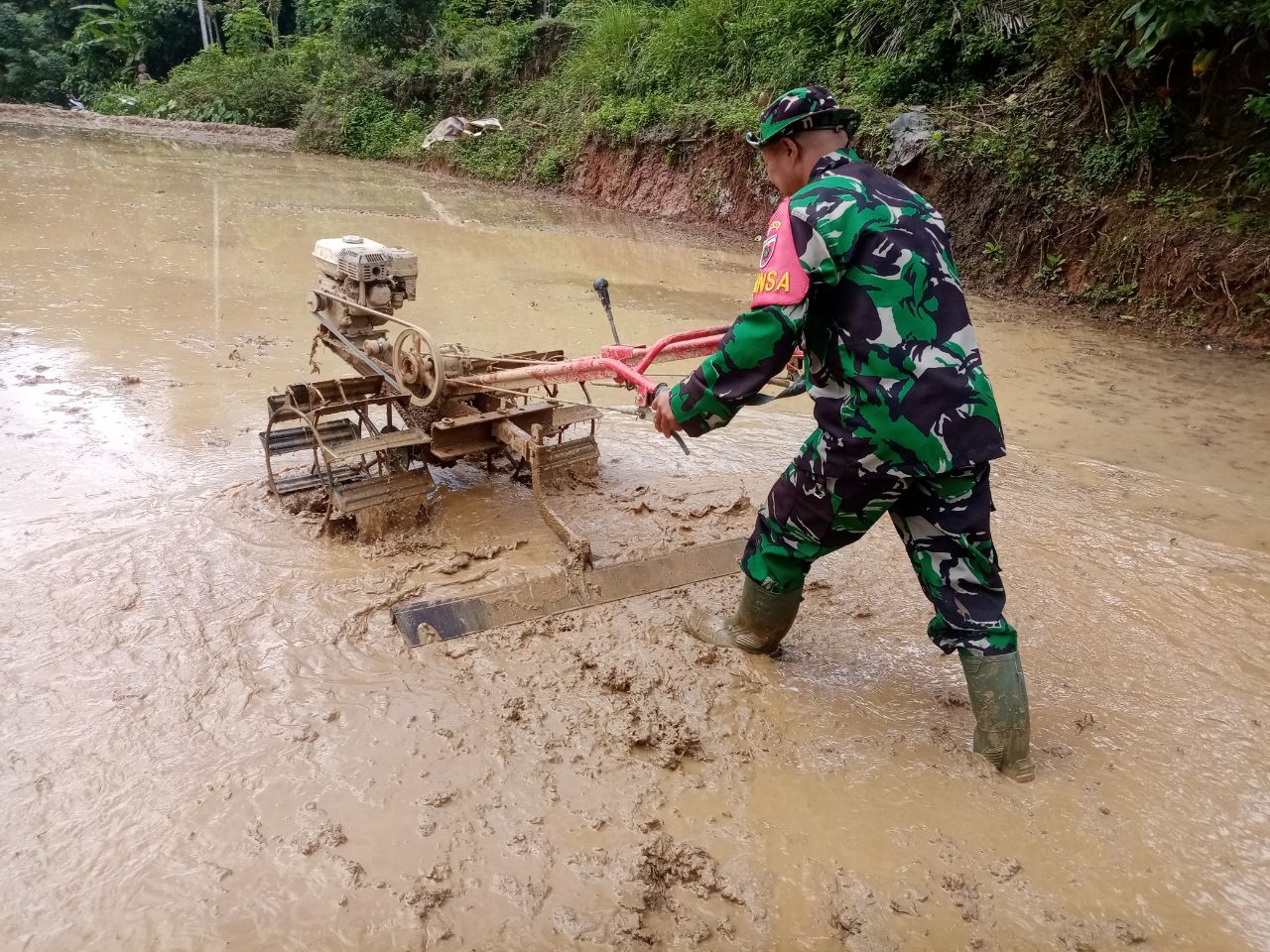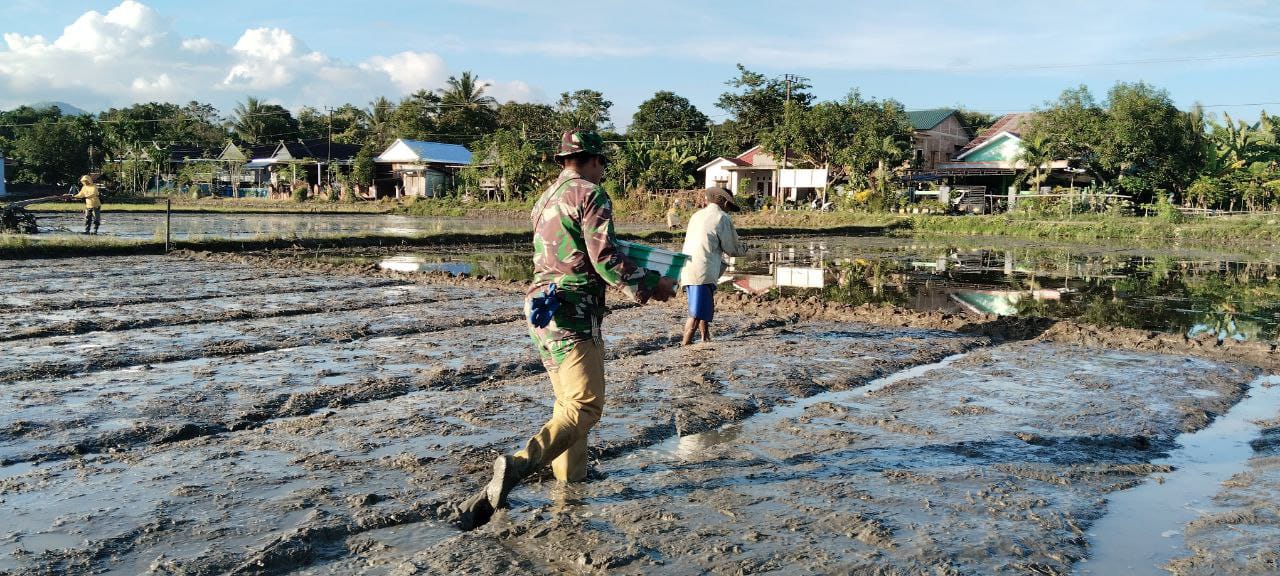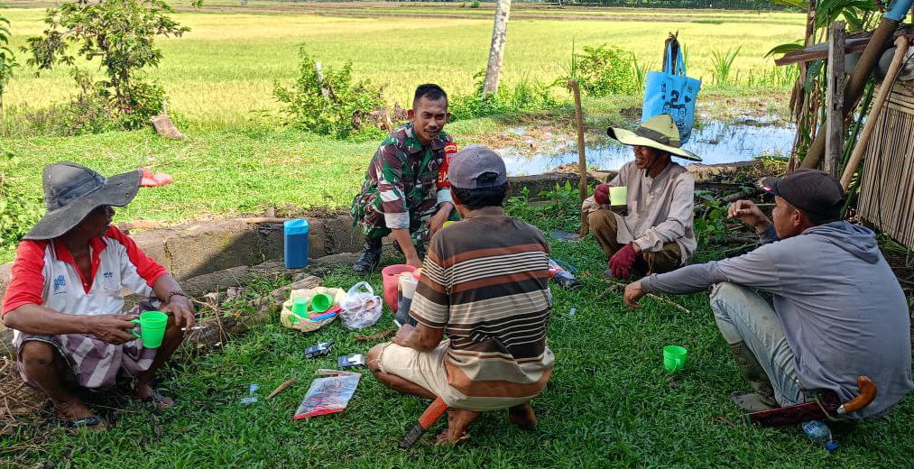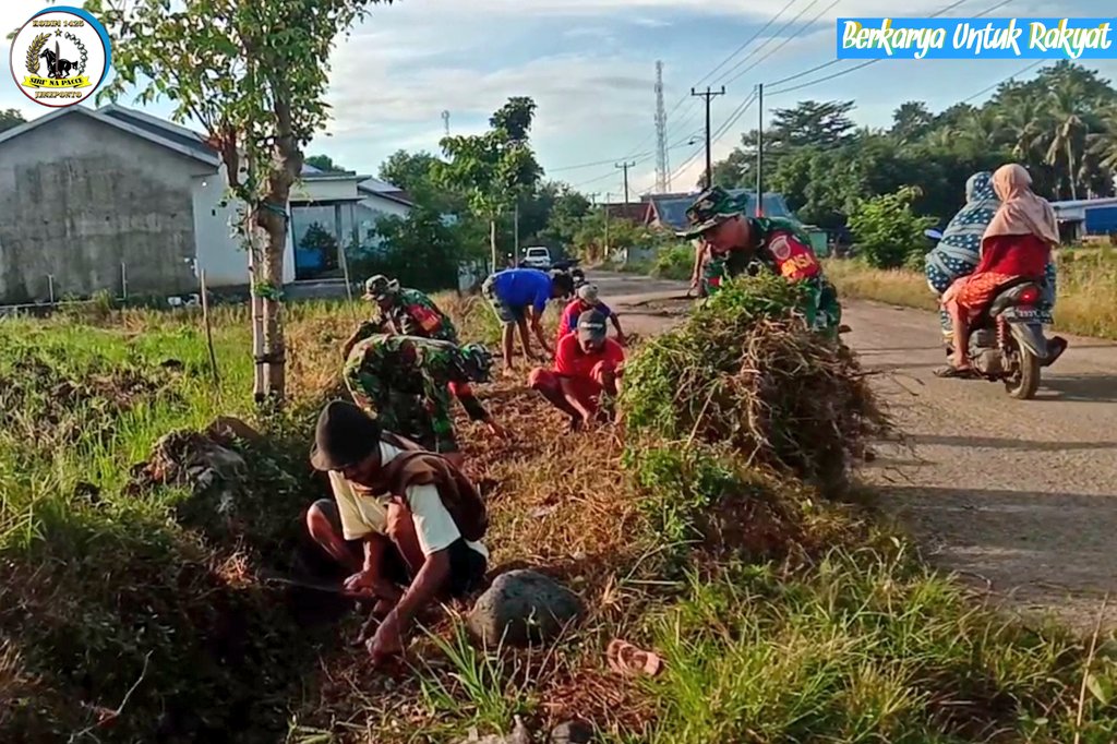 TNI & POLRI Budayakan Gotong Royong, Babinsa Koramil 1407-09/Lapri Ajak Warga Patangkai Percantik Alun-Alun Desa