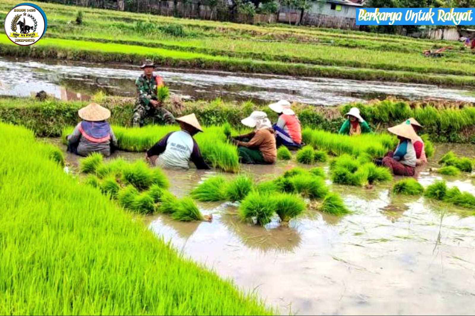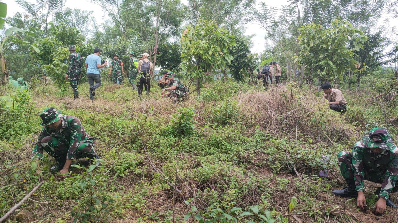 TNI & POLRI Budayakan Gotong Royong, Babinsa Koramil 1407-09/Lapri Ajak Warga Patangkai Percantik Alun-Alun Desa