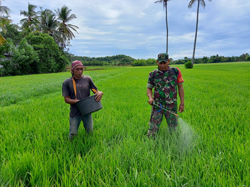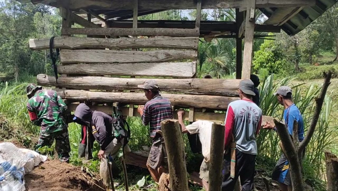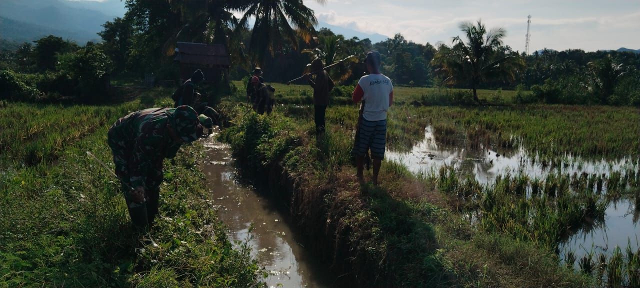 TNI & POLRI Budayakan Gotong Royong, Babinsa Koramil 1407-09/Lapri Ajak Warga Patangkai Percantik Alun-Alun Desa