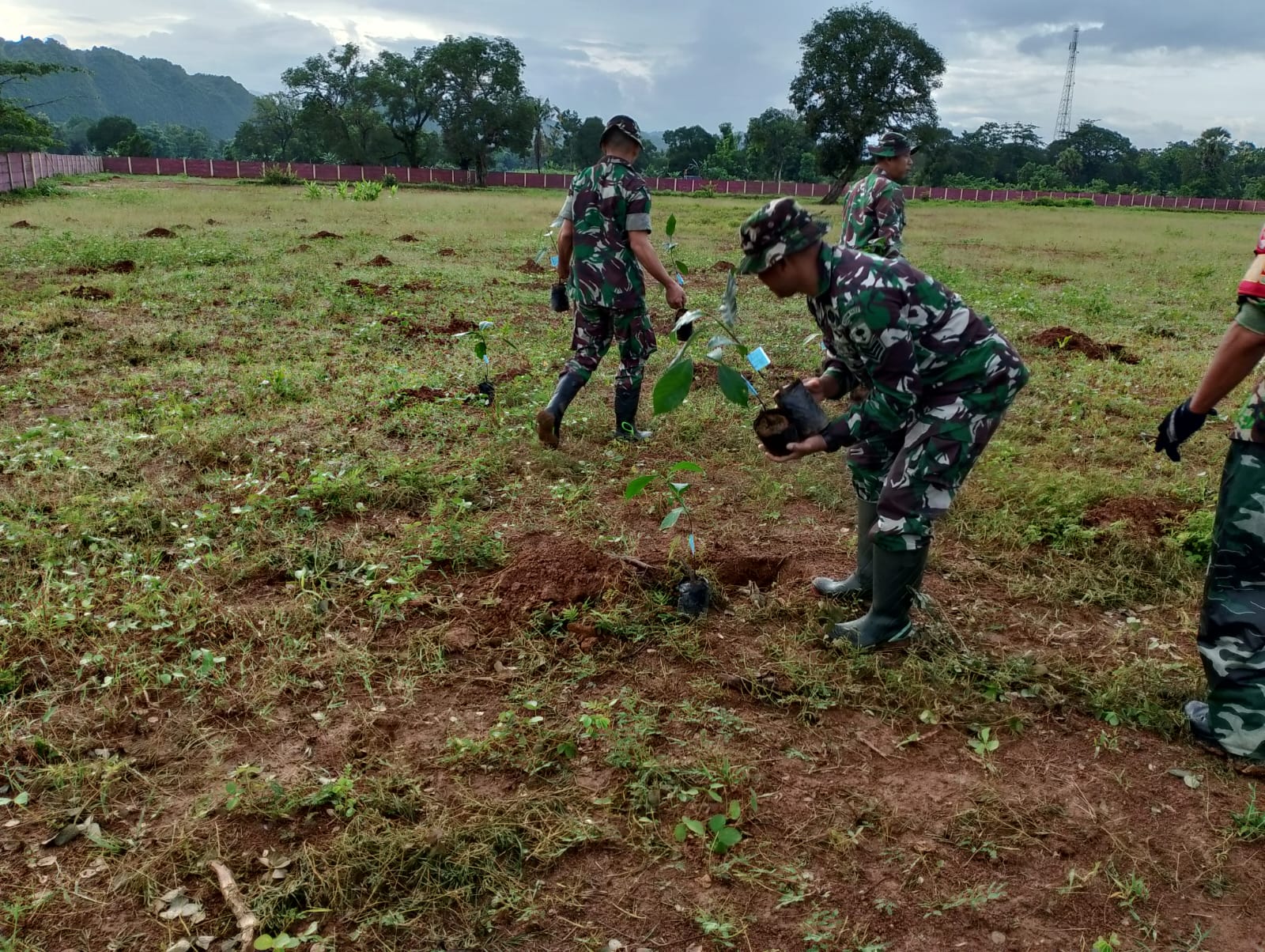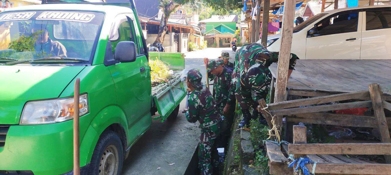 TNI & POLRI Budayakan Gotong Royong, Babinsa Koramil 1407-09/Lapri Ajak Warga Patangkai Percantik Alun-Alun Desa