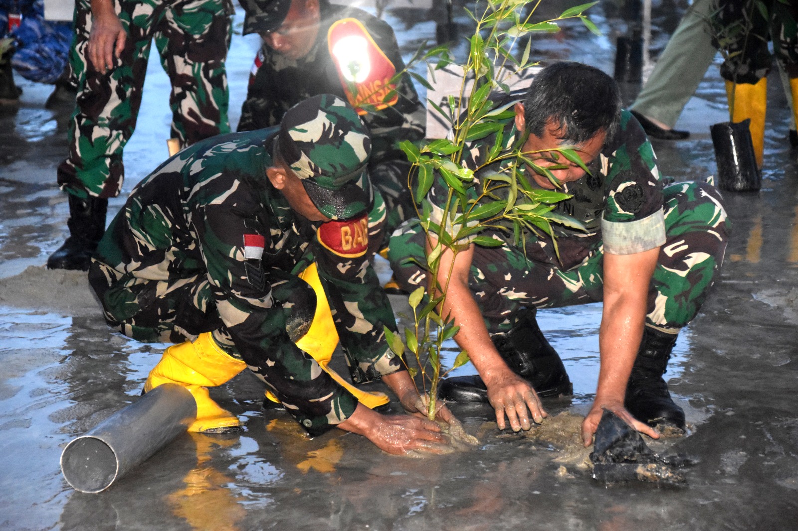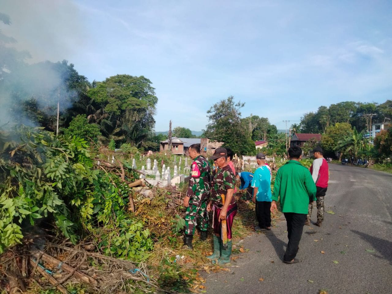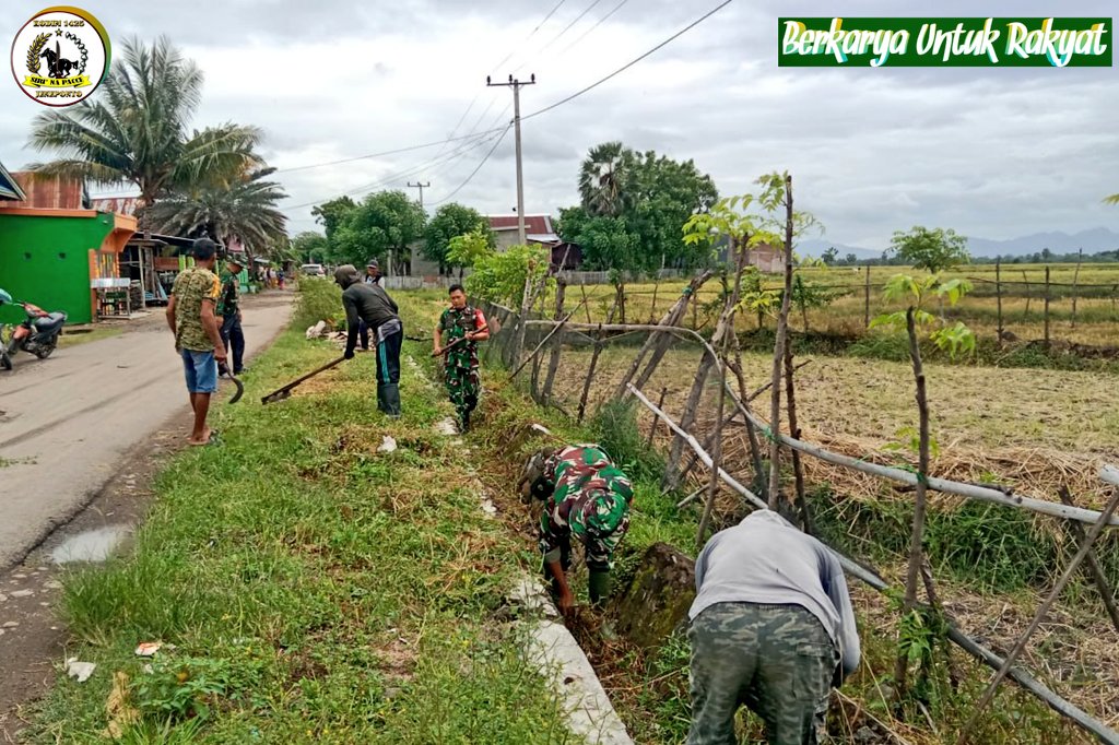 TNI & POLRI Budayakan Gotong Royong, Babinsa Koramil 1407-09/Lapri Ajak Warga Patangkai Percantik Alun-Alun Desa