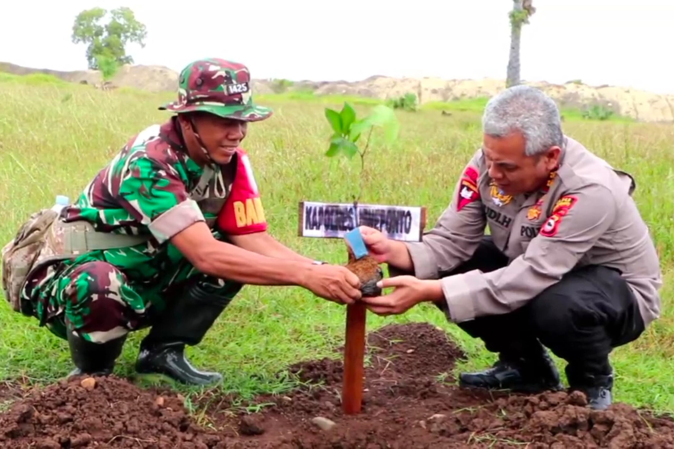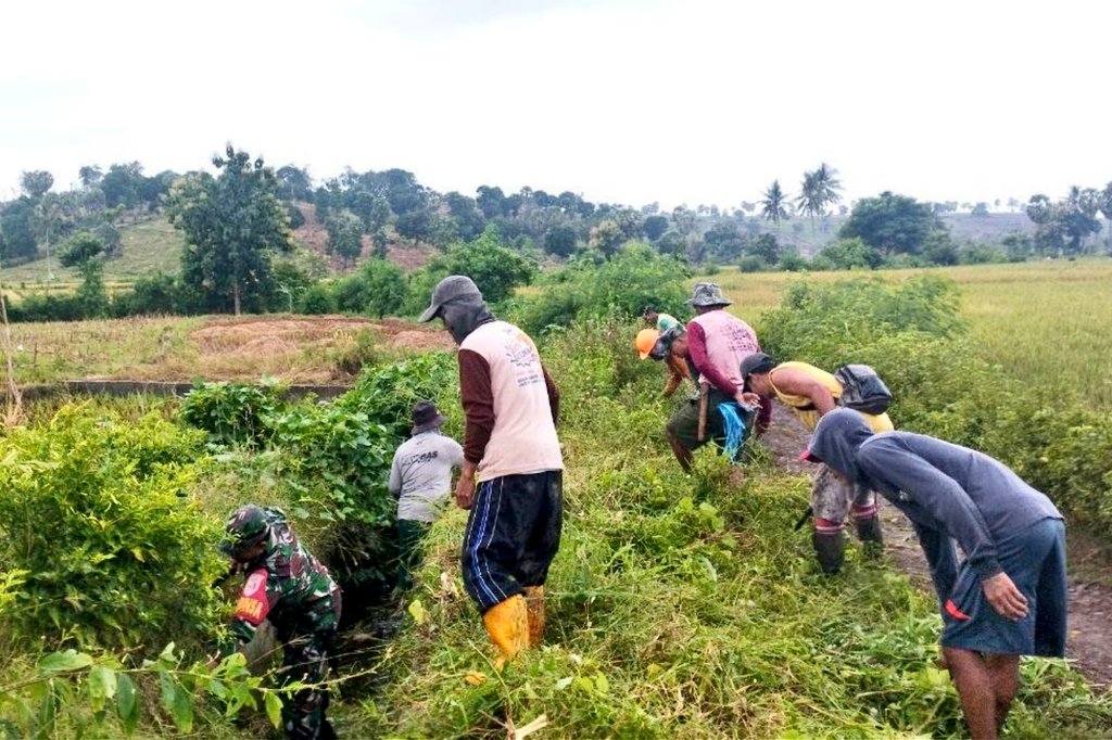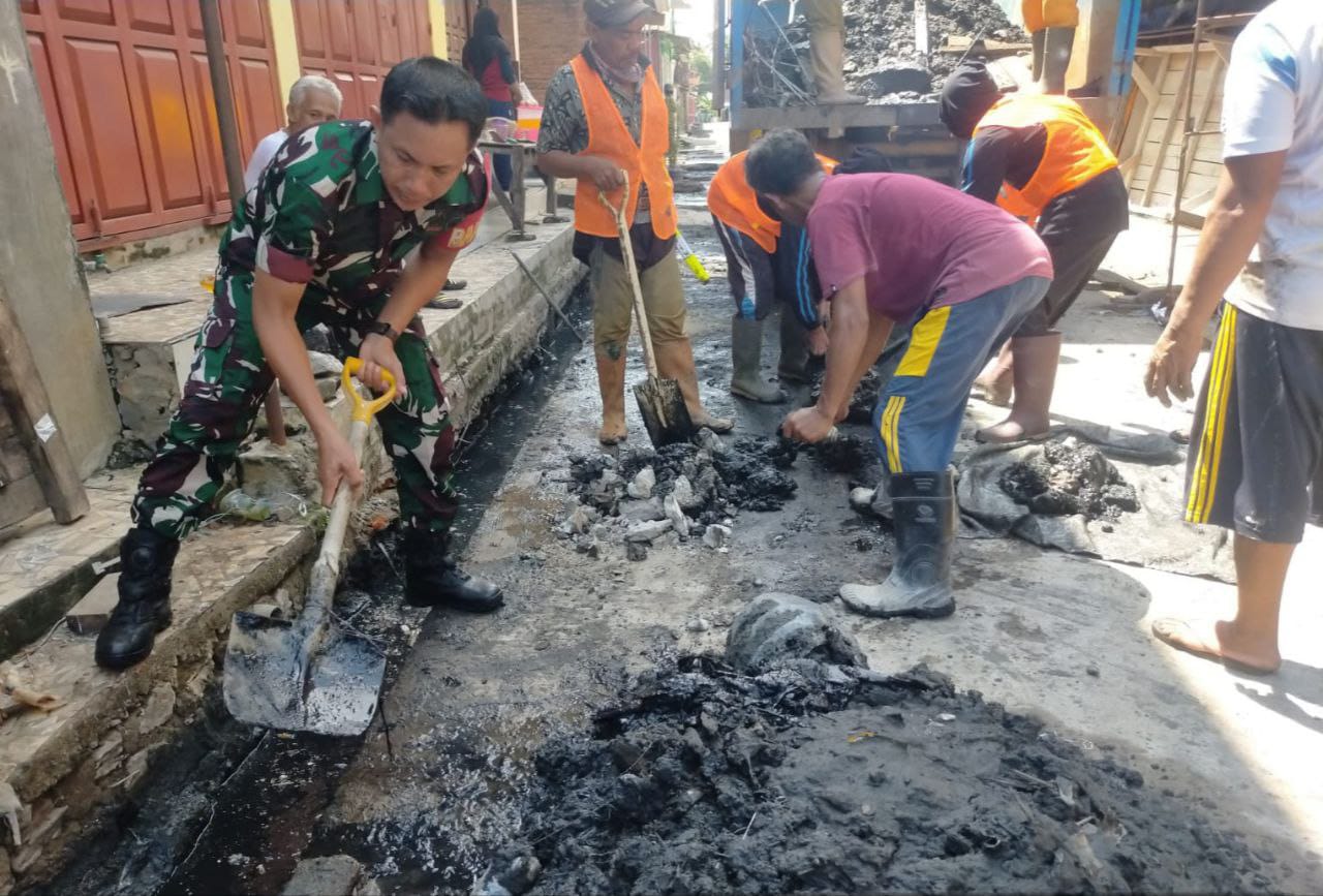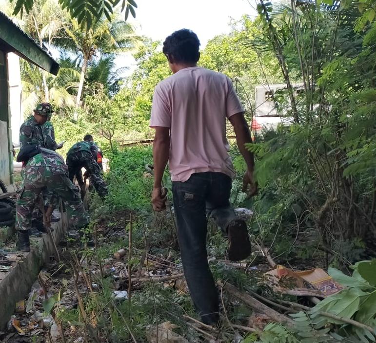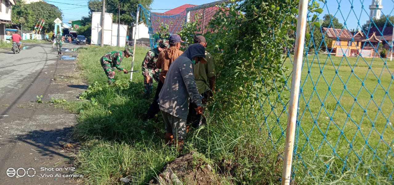 TNI & POLRI Budayakan Gotong Royong, Babinsa Koramil 1407-09/Lapri Ajak Warga Patangkai Percantik Alun-Alun Desa