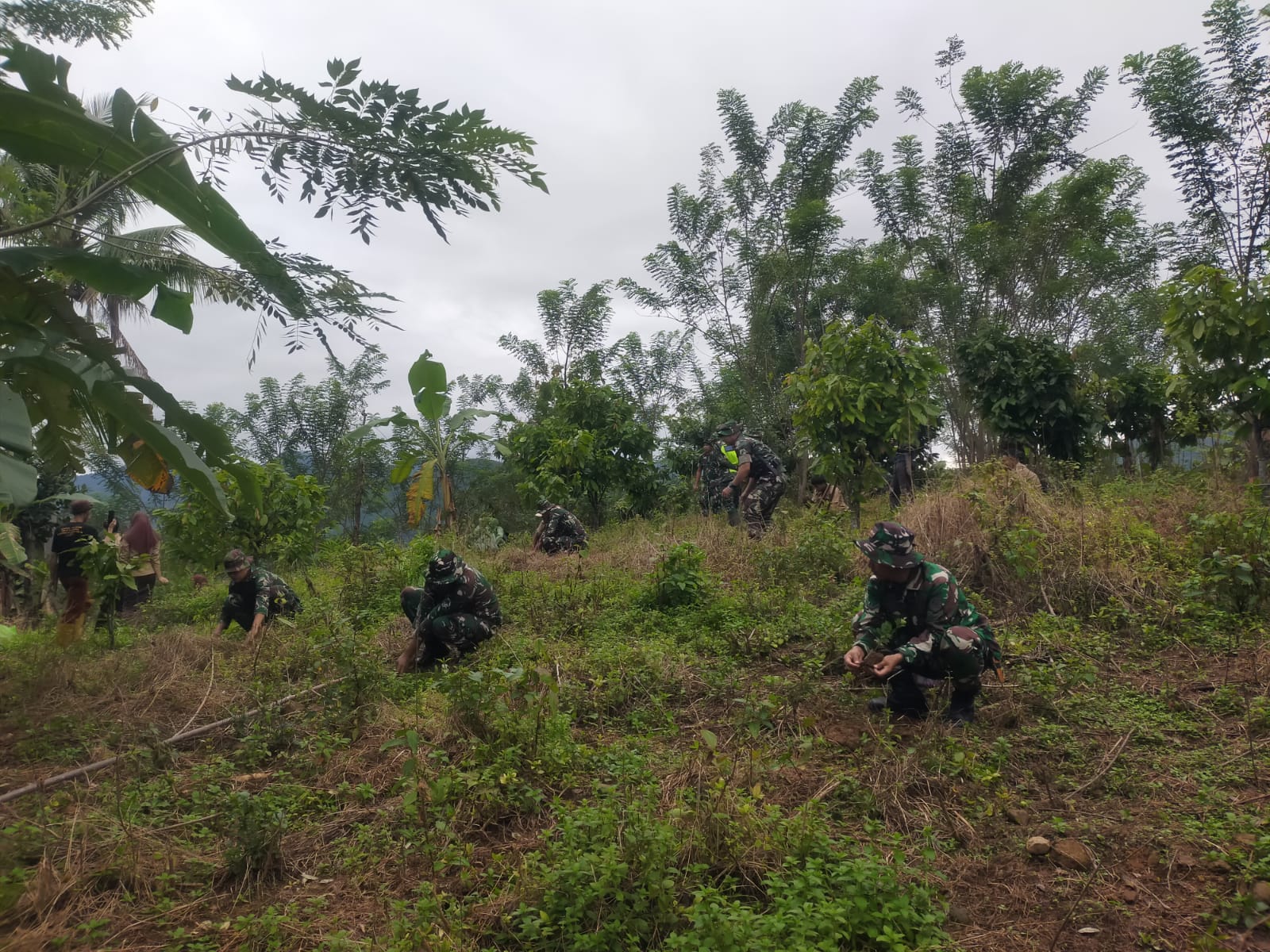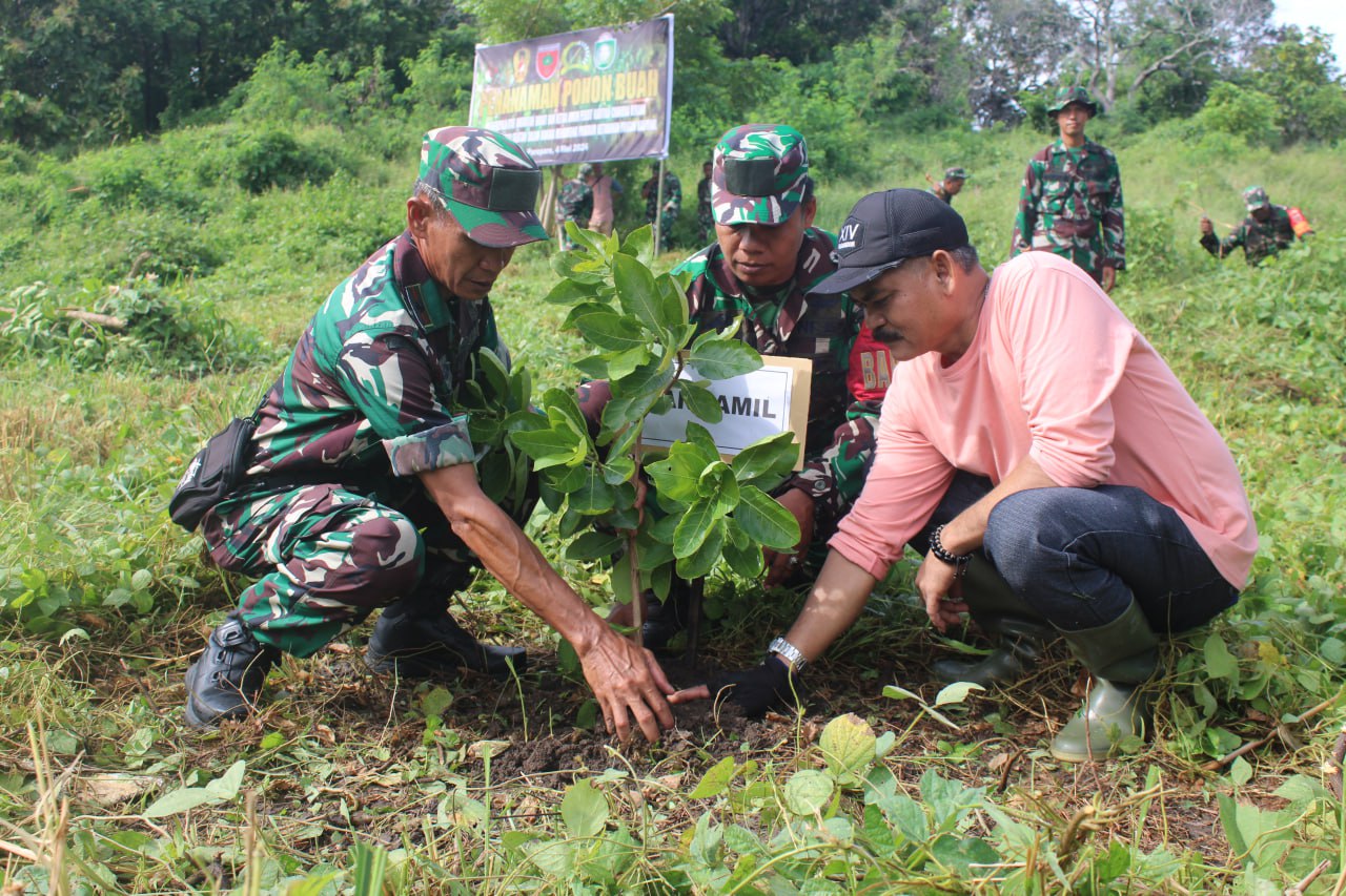 TNI & POLRI Budayakan Gotong Royong, Babinsa Koramil 1407-09/Lapri Ajak Warga Patangkai Percantik Alun-Alun Desa