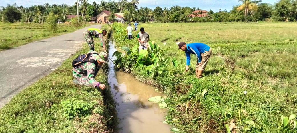 Budayakan Gotong Royong, Babinsa Koramil 1407-09/Lapri Ajak Warga Patangkai Percantik Alun-Alun Desa