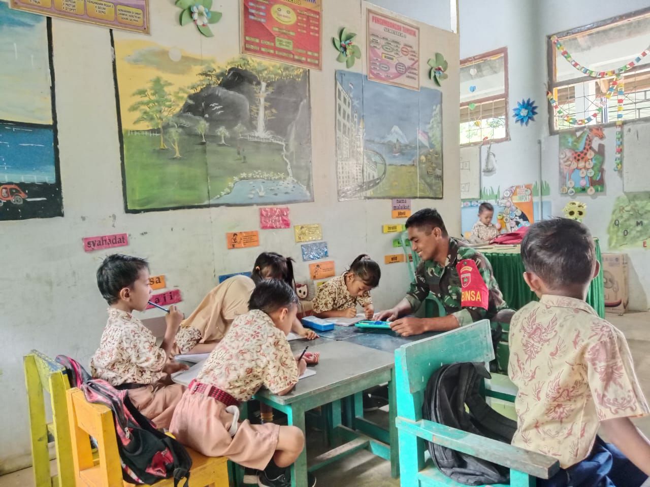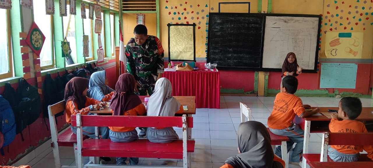 Bentuk Karakter Generasi Muda, Babinsa Libureng Kodim 1407/Bone Latih Baris-Berbaris Murid SD