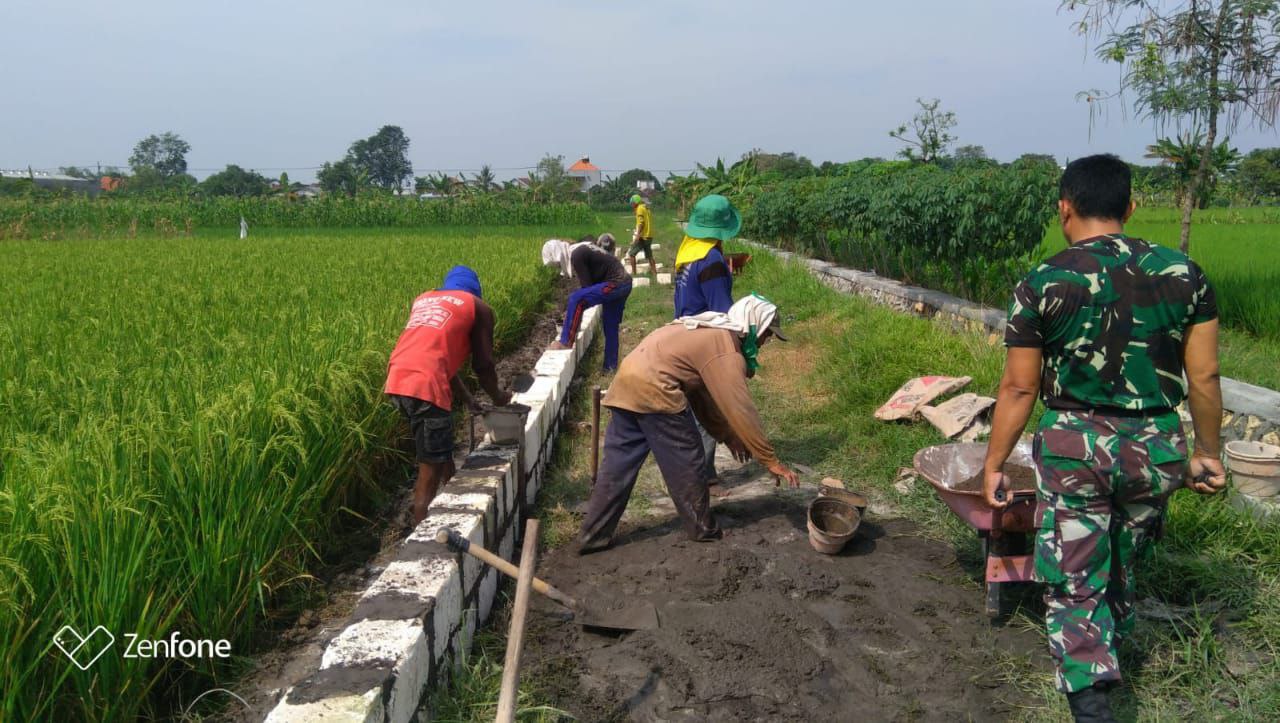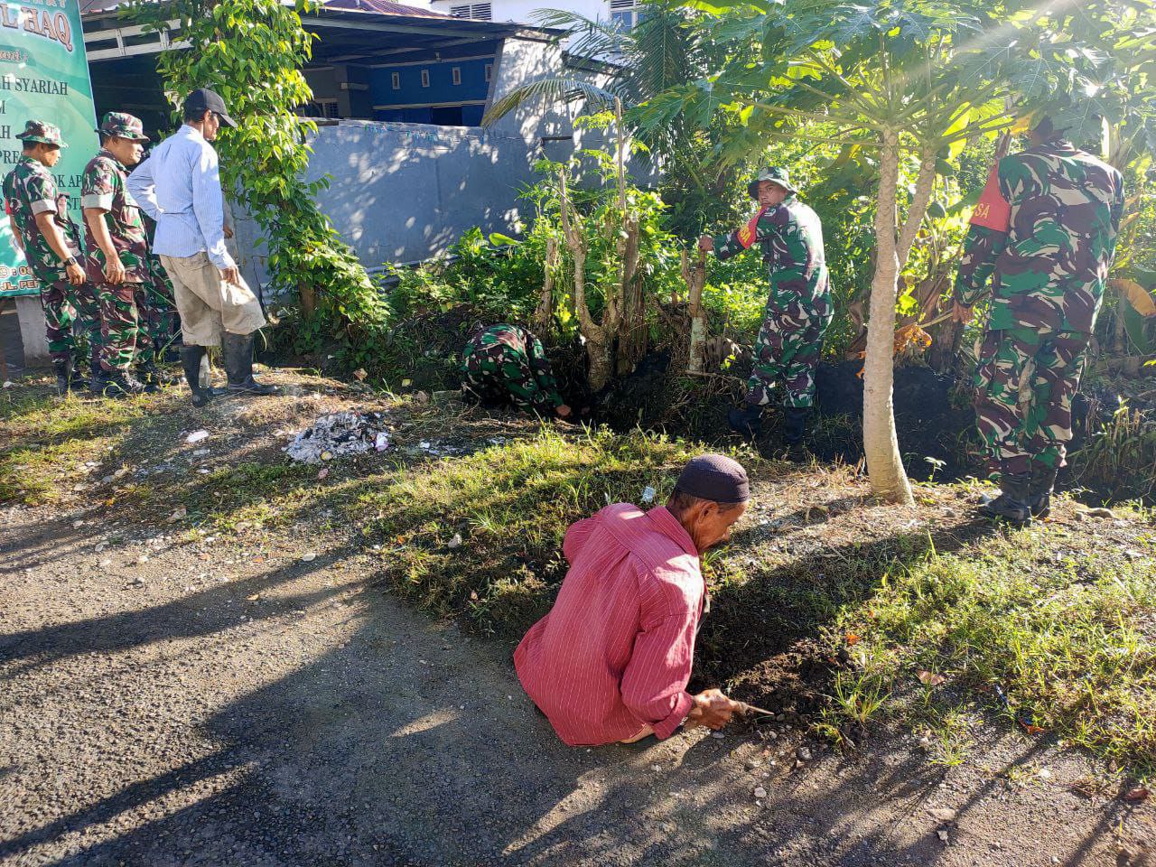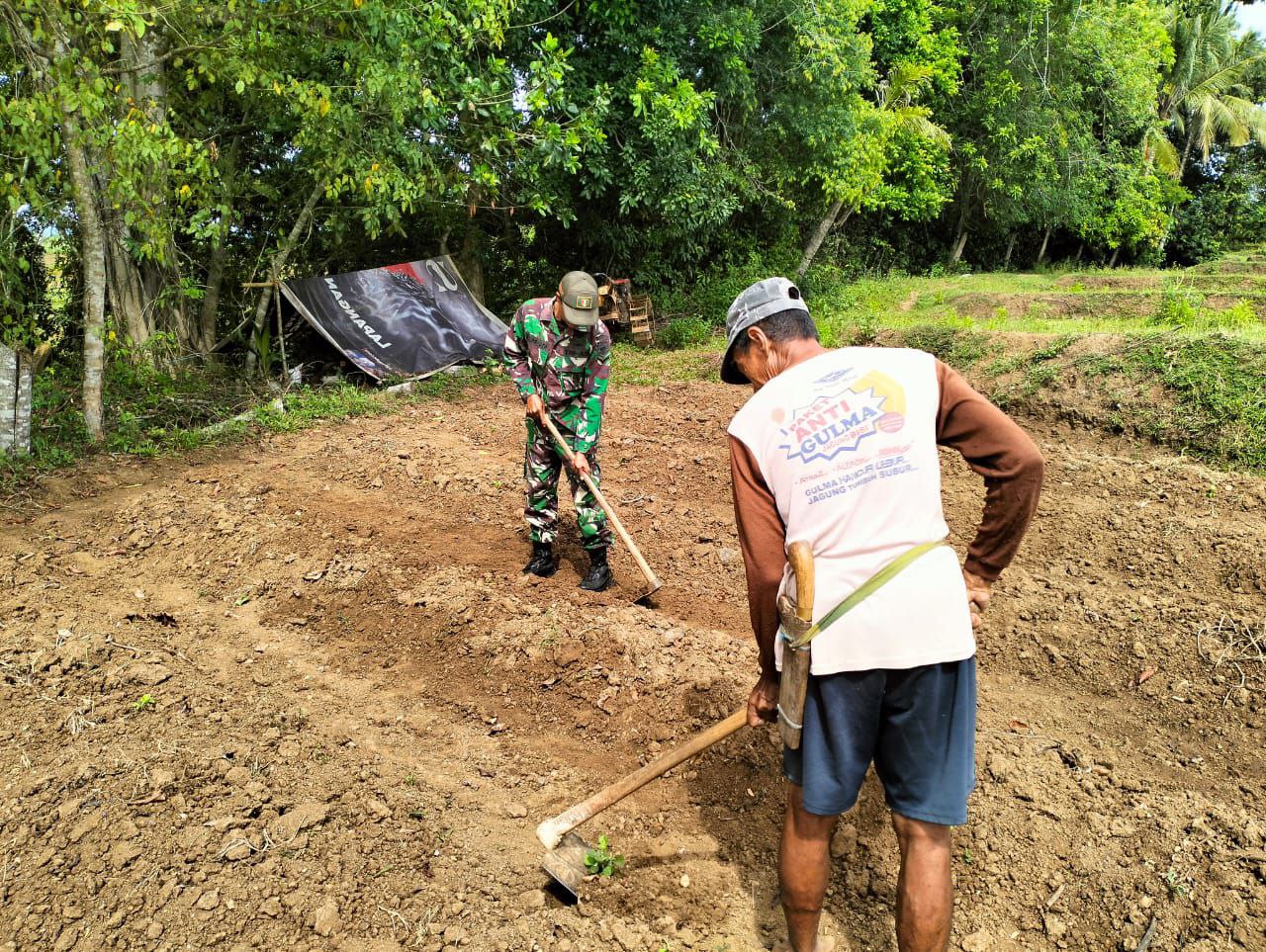 TNI & POLRI Budayakan Gotong Royong, Babinsa Koramil 1407-09/Lapri Ajak Warga Patangkai Percantik Alun-Alun Desa