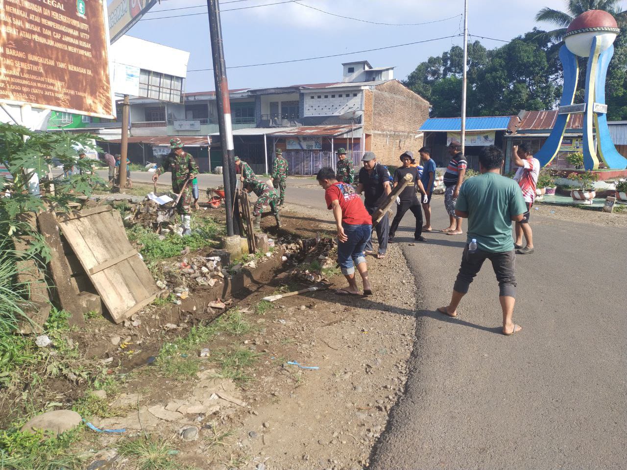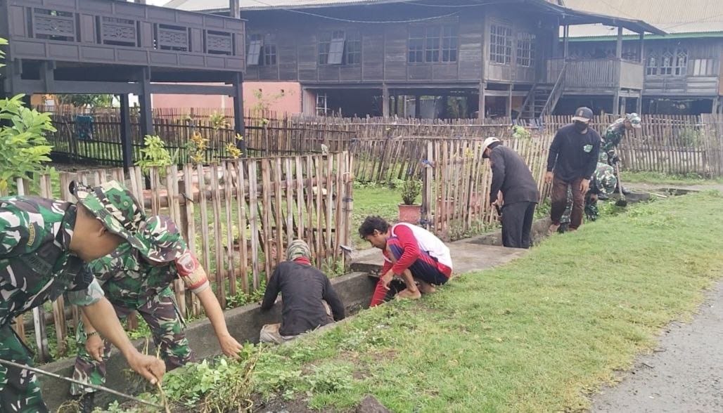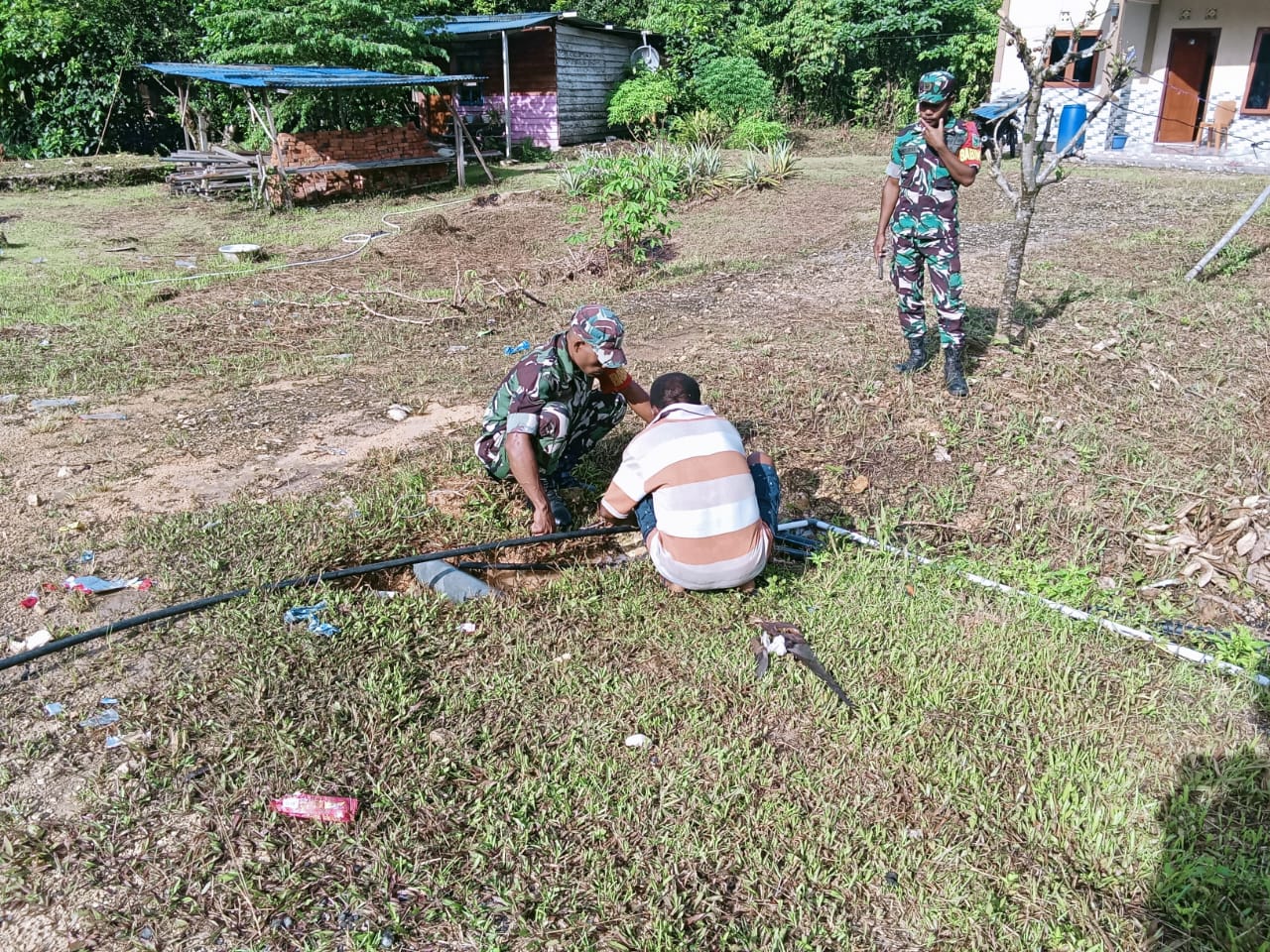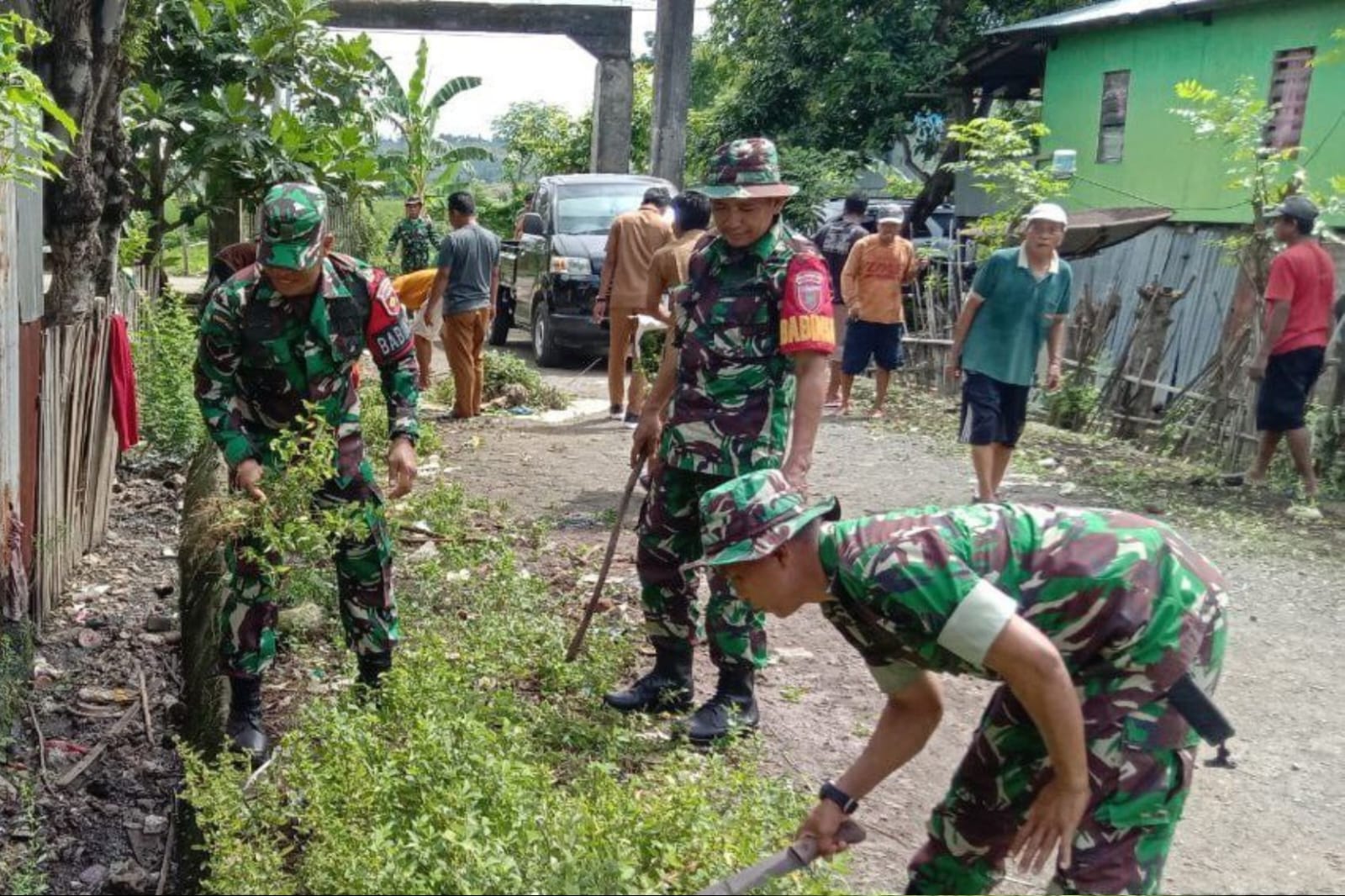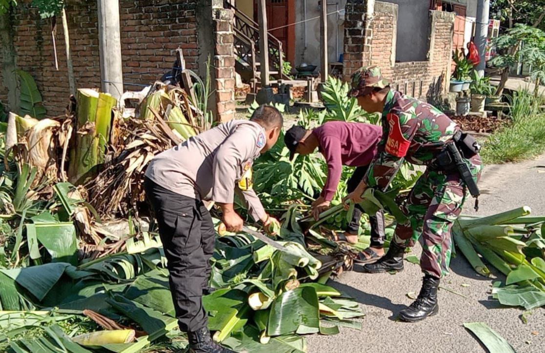 TNI & POLRI Budayakan Gotong Royong, Babinsa Koramil 1407-09/Lapri Ajak Warga Patangkai Percantik Alun-Alun Desa