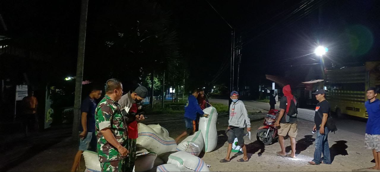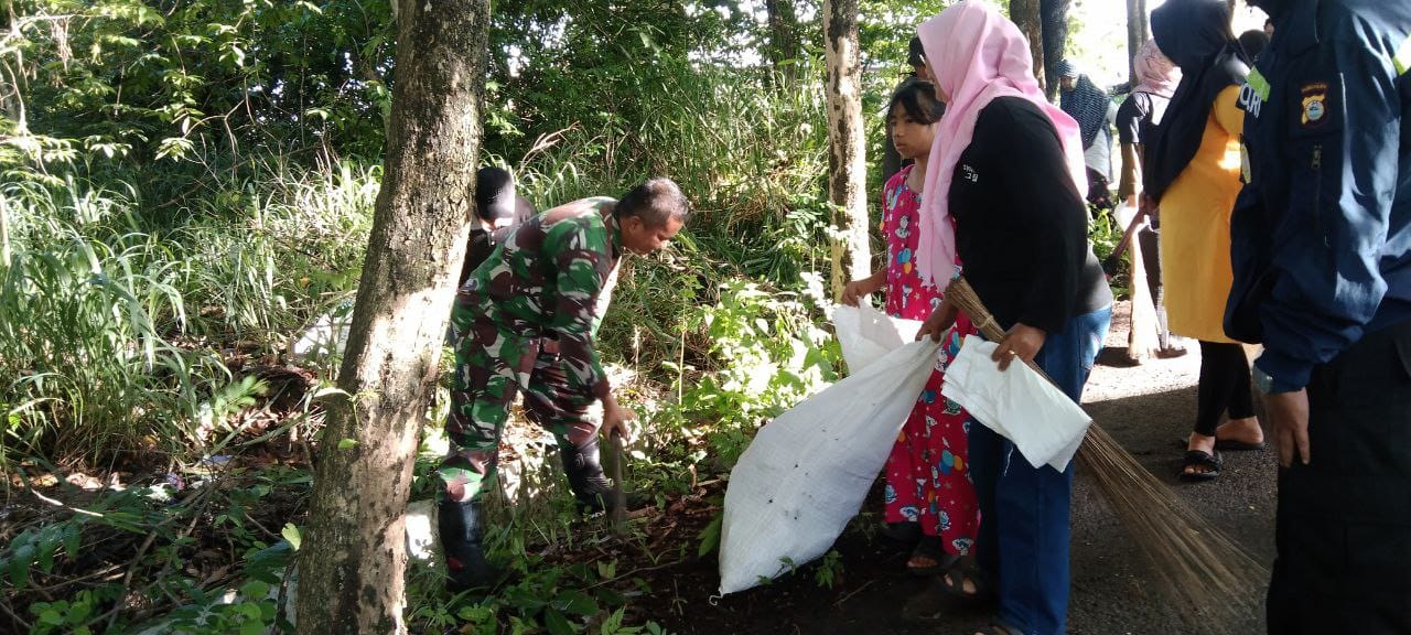 TNI & POLRI Kemanunggalan Di Desa Carigading : Babinsa Koramil 1407-06/Awangpone Gerakkan Semangat Gotong Royong Bersihkan Desa