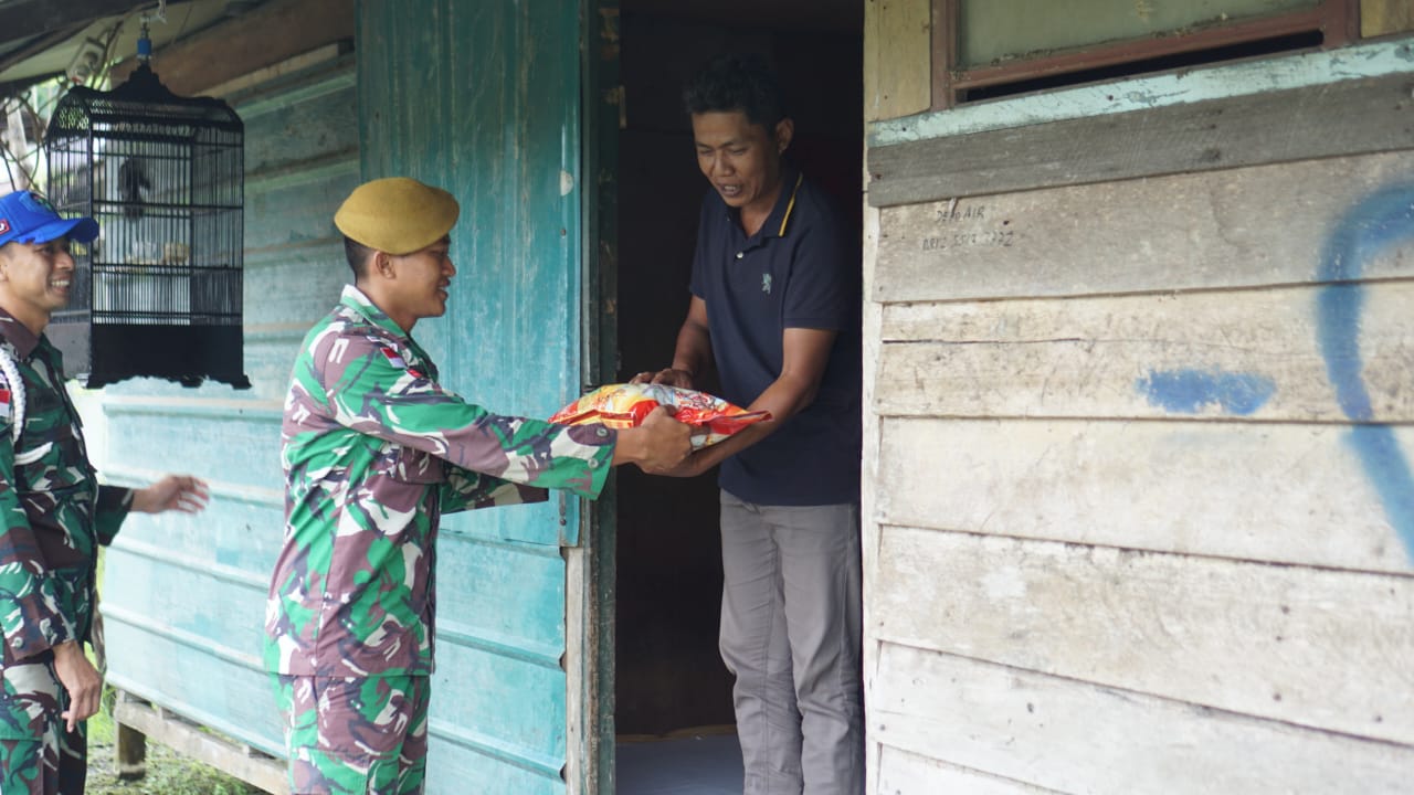 Kemanunggalan Di Desa Carigading : Babinsa Koramil 1407-06/Awangpone Gerakkan Semangat Gotong Royong Bersihkan Desa