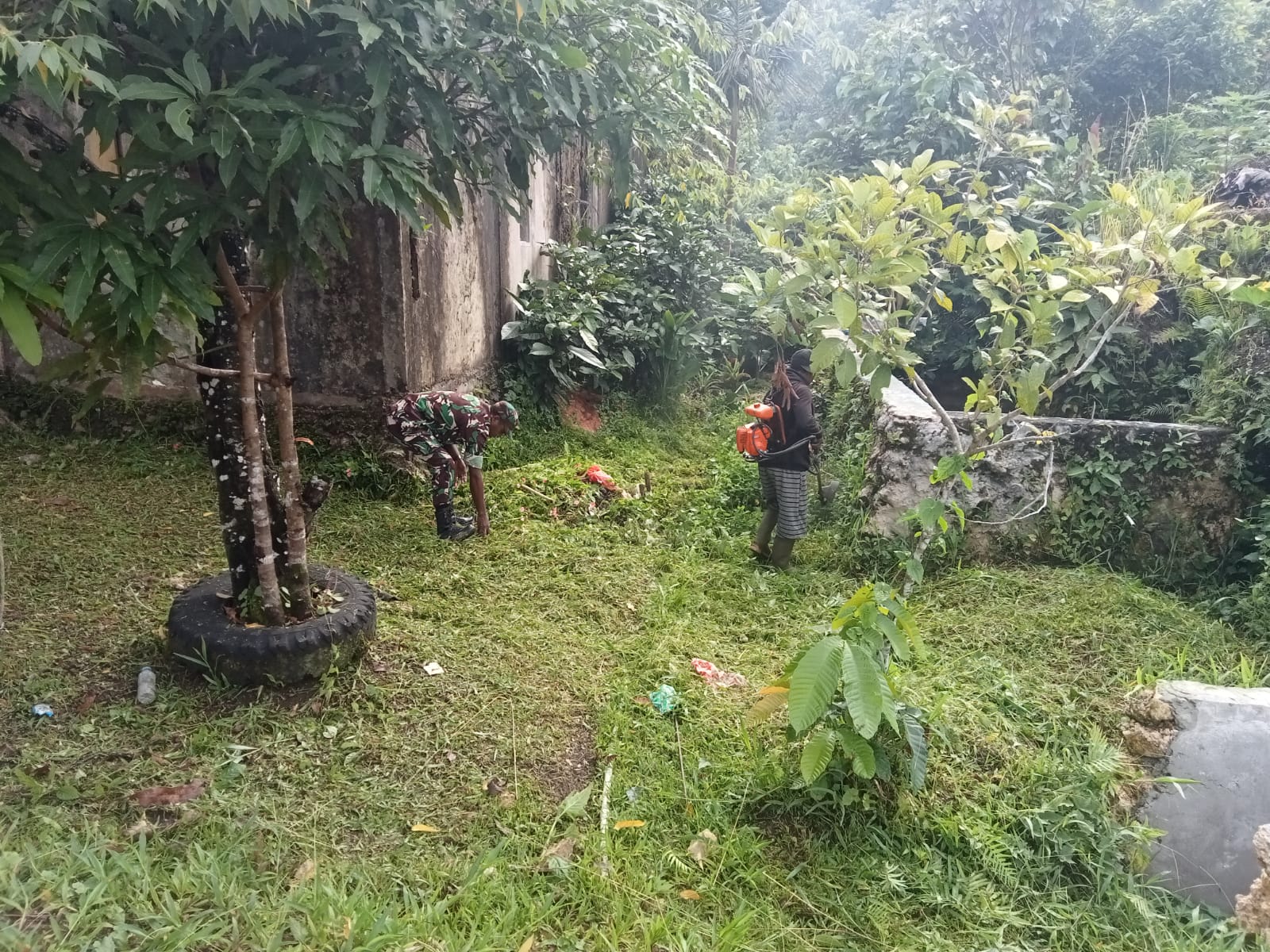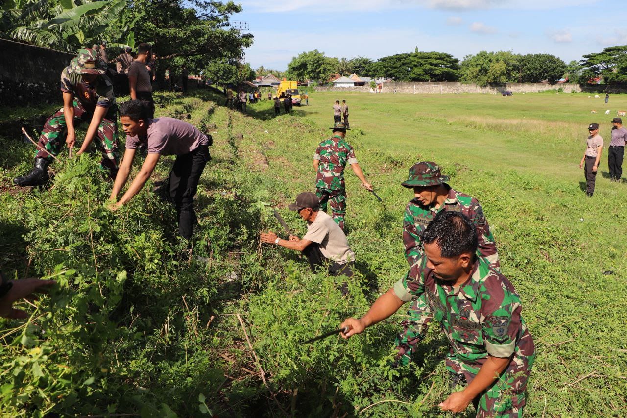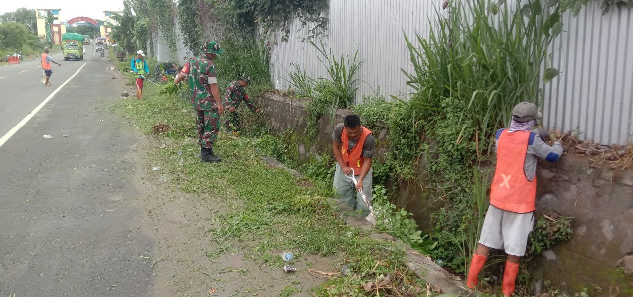 TNI & POLRI Kemanunggalan Di Desa Carigading : Babinsa Koramil 1407-06/Awangpone Gerakkan Semangat Gotong Royong Bersihkan Desa