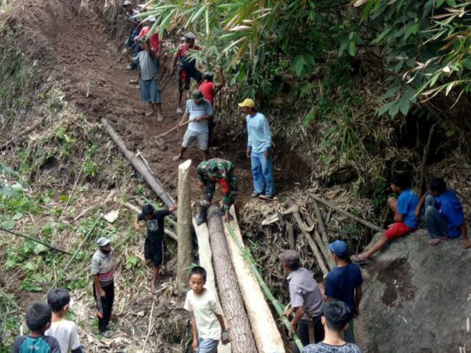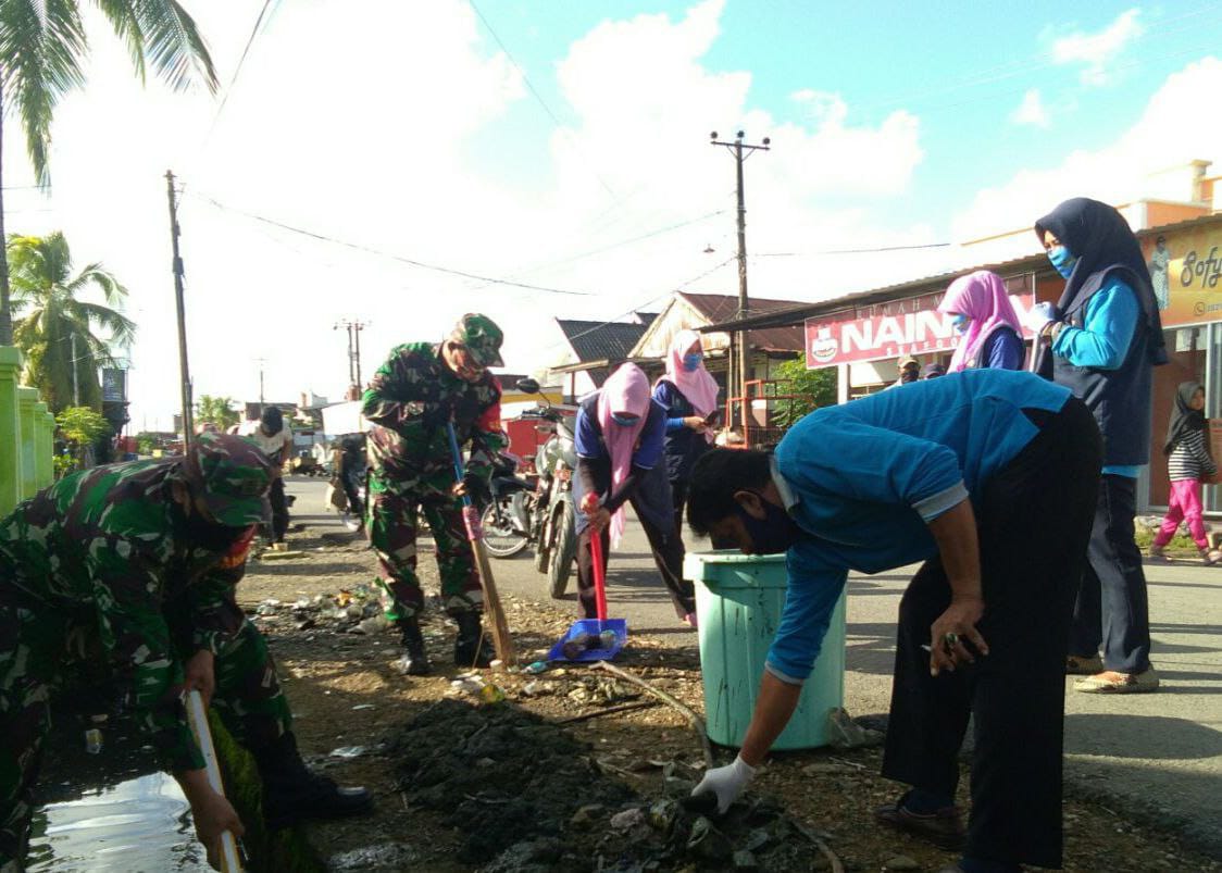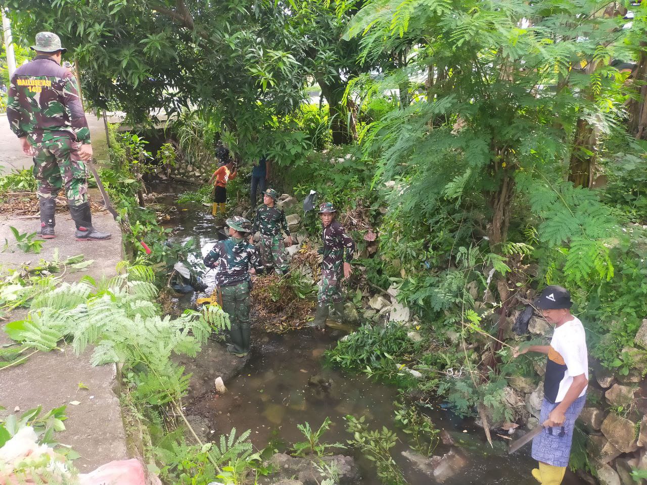 TNI & POLRI Kemanunggalan Di Desa Carigading : Babinsa Koramil 1407-06/Awangpone Gerakkan Semangat Gotong Royong Bersihkan Desa