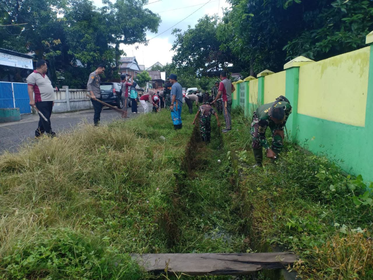 TNI & POLRI Kemanunggalan Di Desa Carigading : Babinsa Koramil 1407-06/Awangpone Gerakkan Semangat Gotong Royong Bersihkan Desa