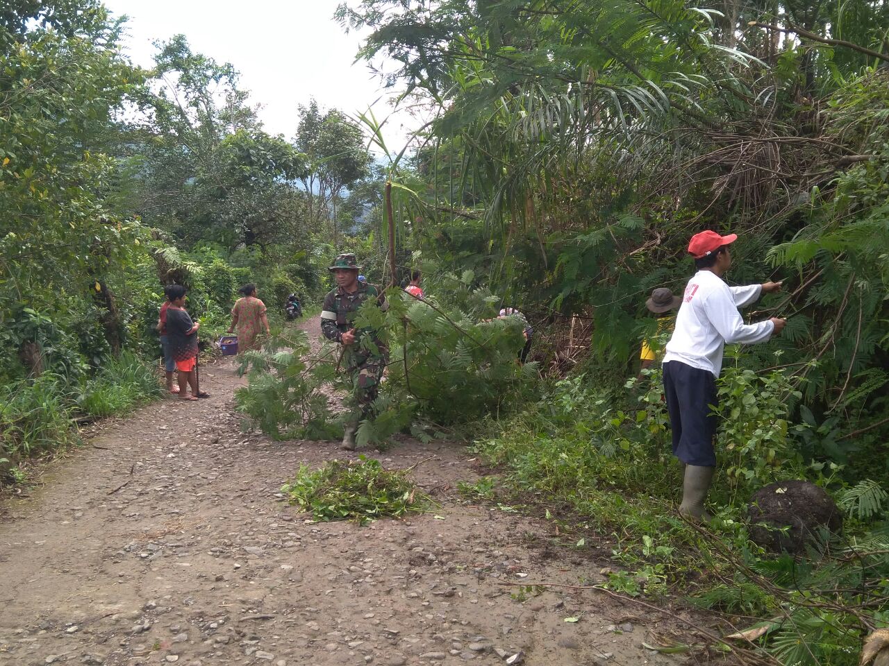 TNI & POLRI Kemanunggalan Di Desa Carigading : Babinsa Koramil 1407-06/Awangpone Gerakkan Semangat Gotong Royong Bersihkan Desa