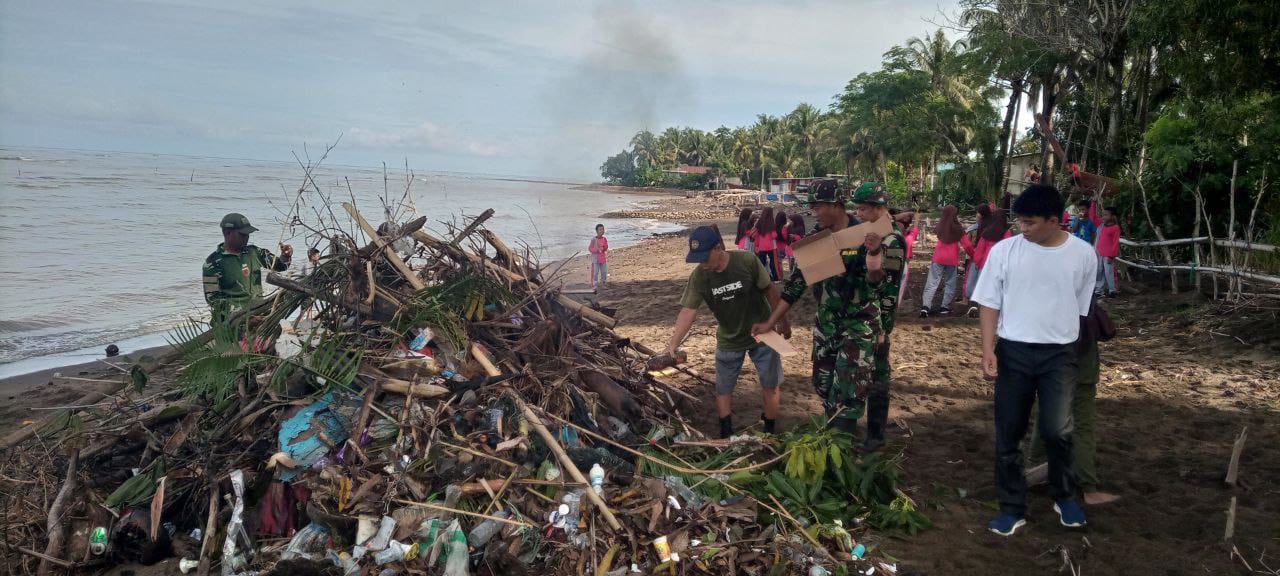 Kemanunggalan Di Desa Carigading : Babinsa Koramil 1407-06/Awangpone Gerakkan Semangat Gotong Royong Bersihkan Desa