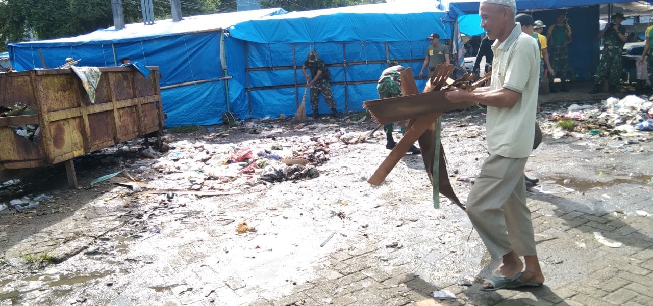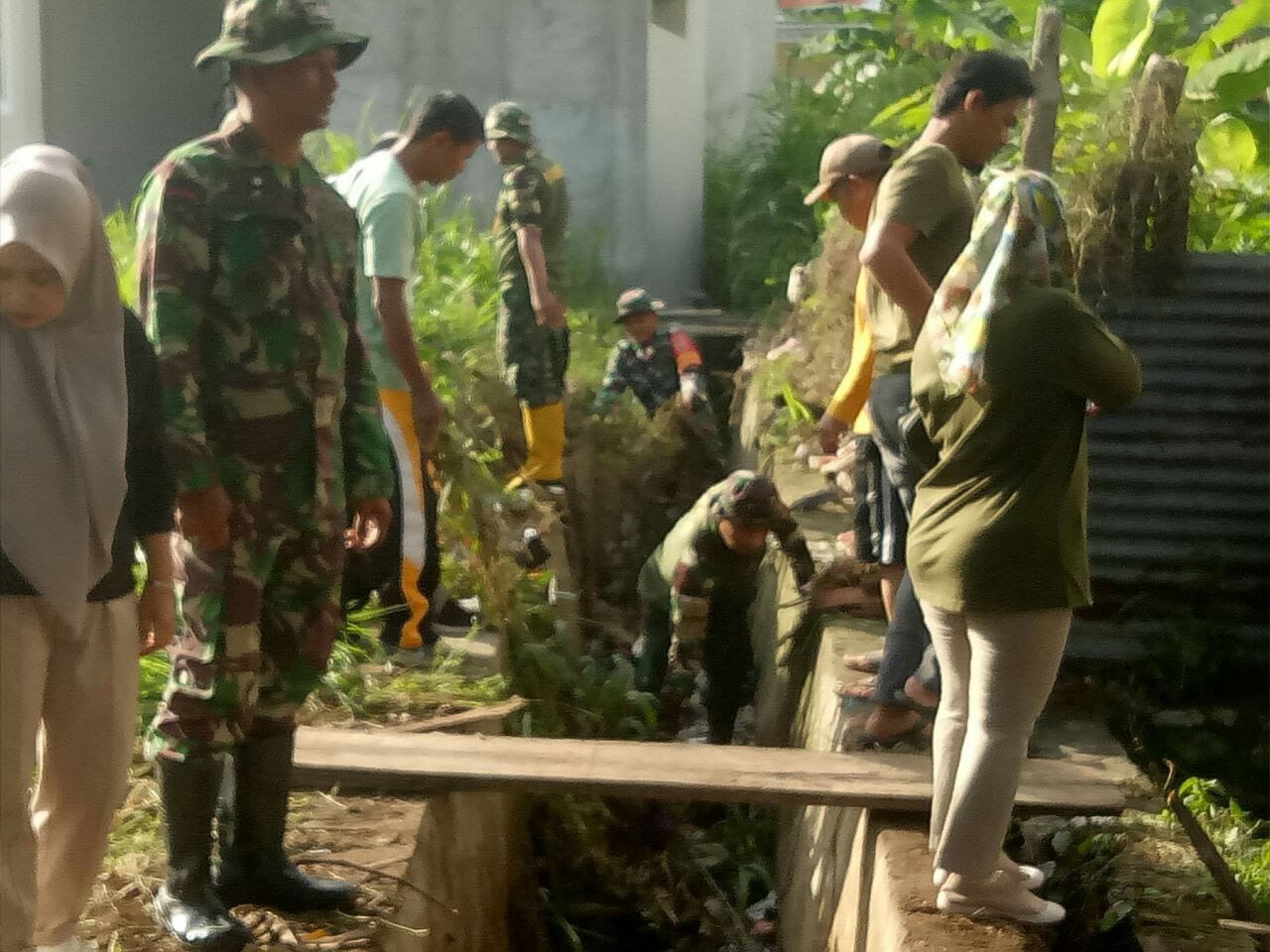 TNI & POLRI Kemanunggalan Di Desa Carigading : Babinsa Koramil 1407-06/Awangpone Gerakkan Semangat Gotong Royong Bersihkan Desa