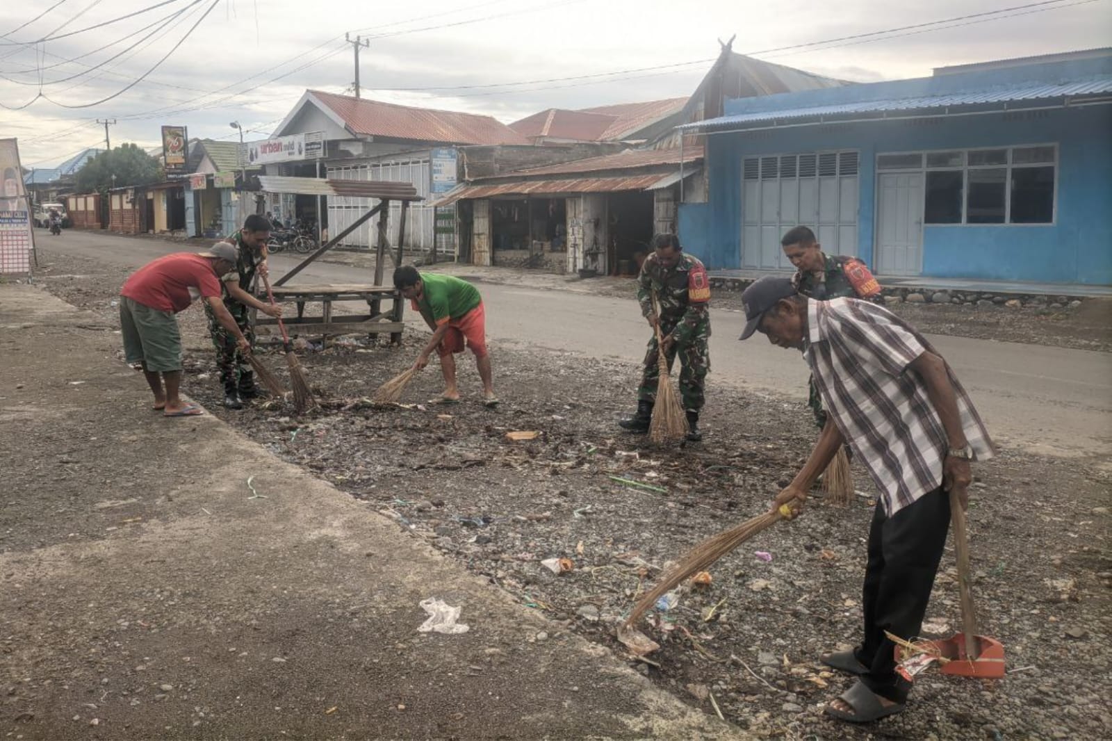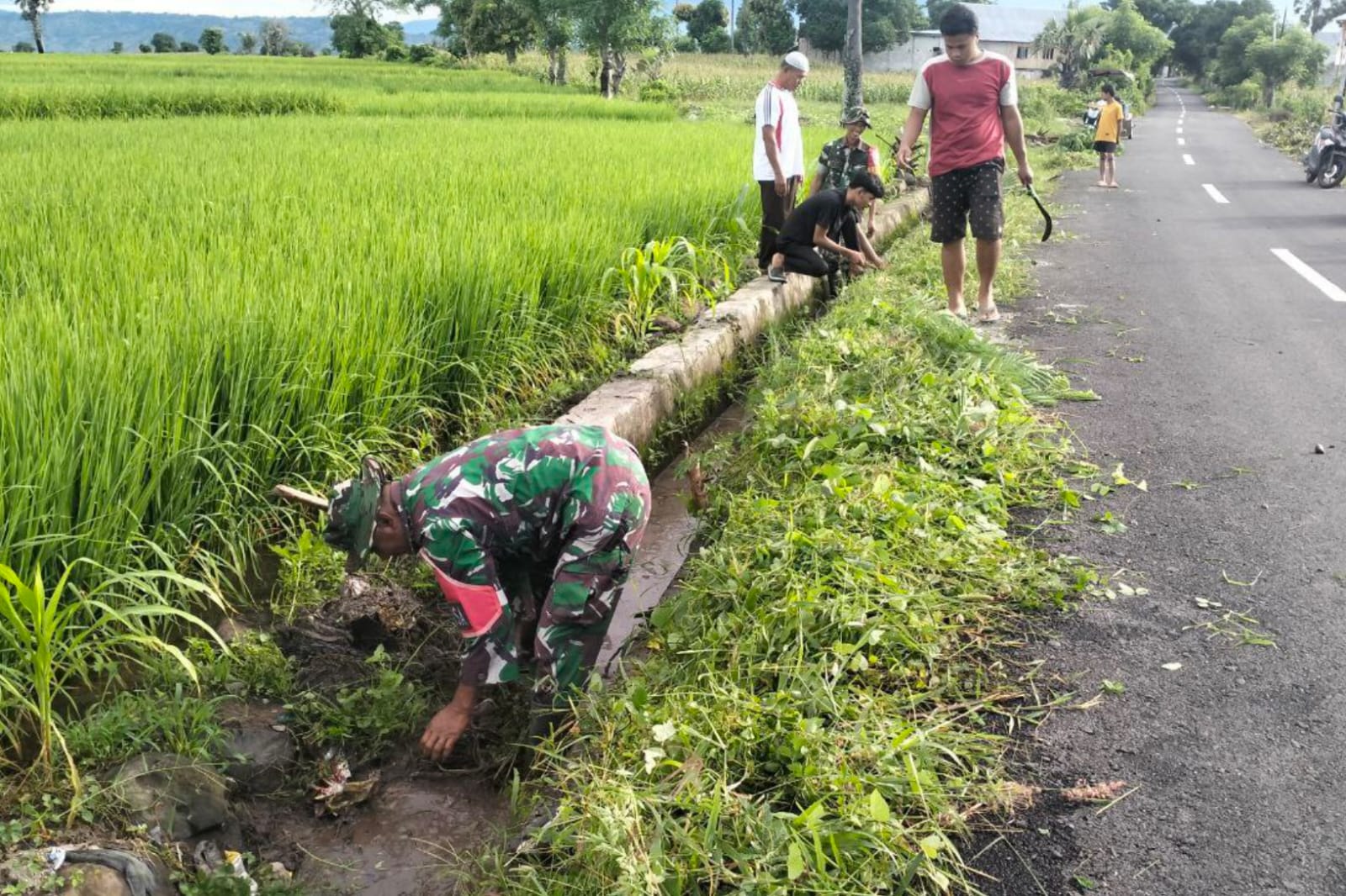 TNI & POLRI Kemanunggalan Di Desa Carigading : Babinsa Koramil 1407-06/Awangpone Gerakkan Semangat Gotong Royong Bersihkan Desa