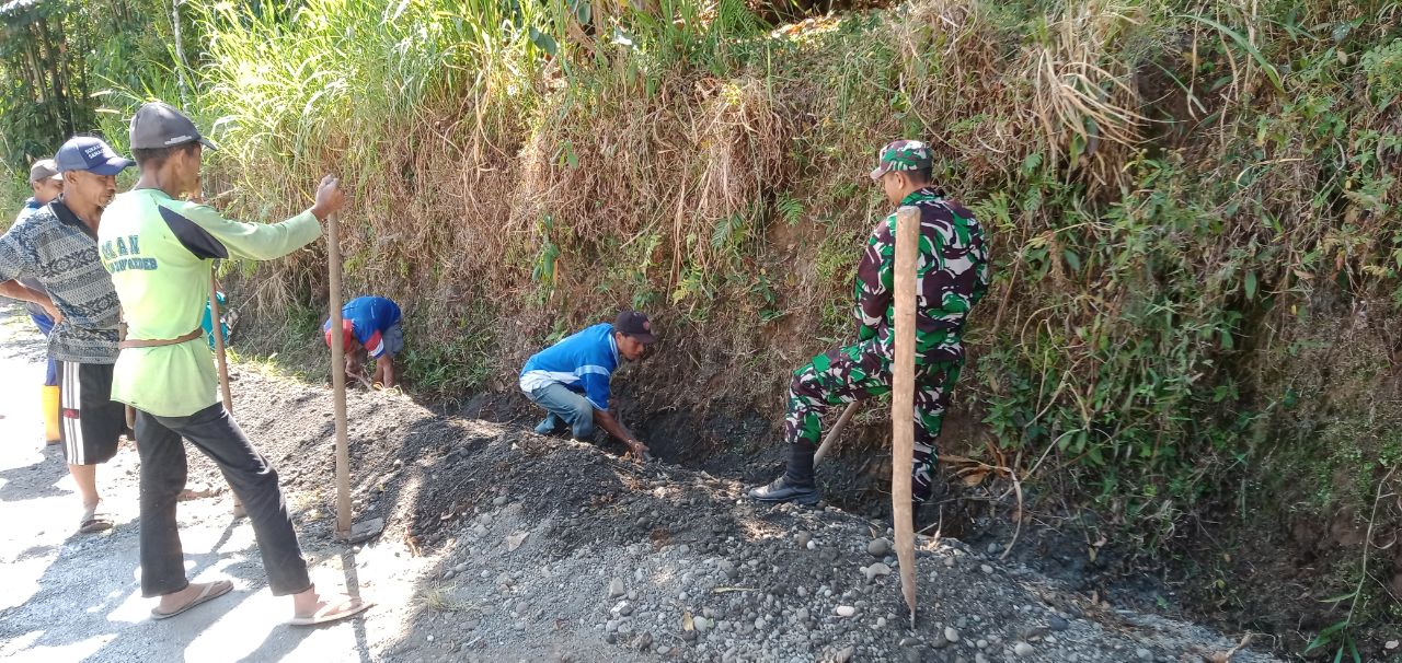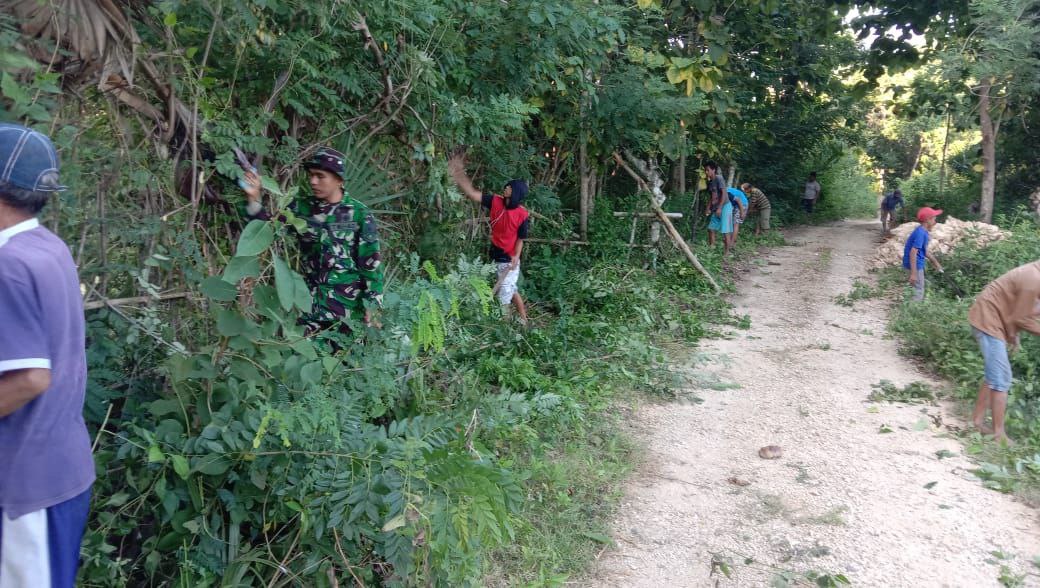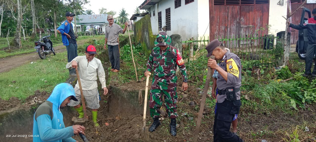 TNI & POLRI Kemanunggalan Di Desa Carigading : Babinsa Koramil 1407-06/Awangpone Gerakkan Semangat Gotong Royong Bersihkan Desa