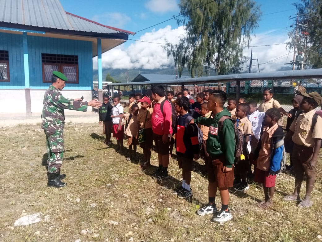 Babinsa Koramil 1407-19/Kahu Dorong Kesadaran Lingkungan Siswa SDN 252 Massila