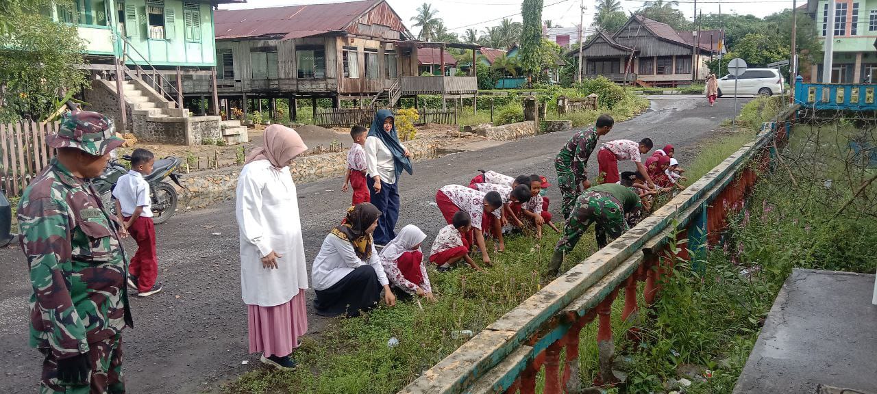 TNI & POLRI Babinsa Koramil 1407-19/Kahu Dorong Kesadaran Lingkungan Siswa SDN 252 Massila