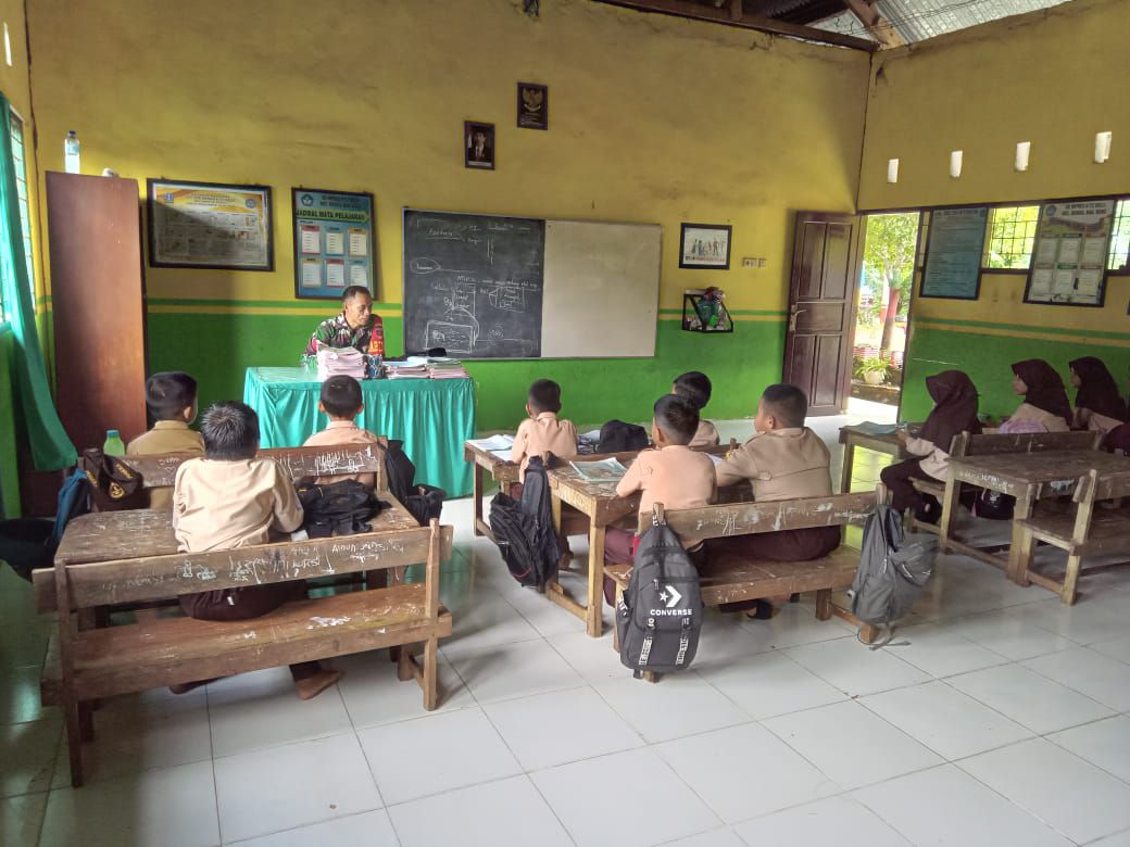 TNI & POLRI Aksi Kompak Babinsa Koramil 1407-03/Cenrana Dan Siswa SD Inpres Watu : Kerja Bakti Perindah Sekolah