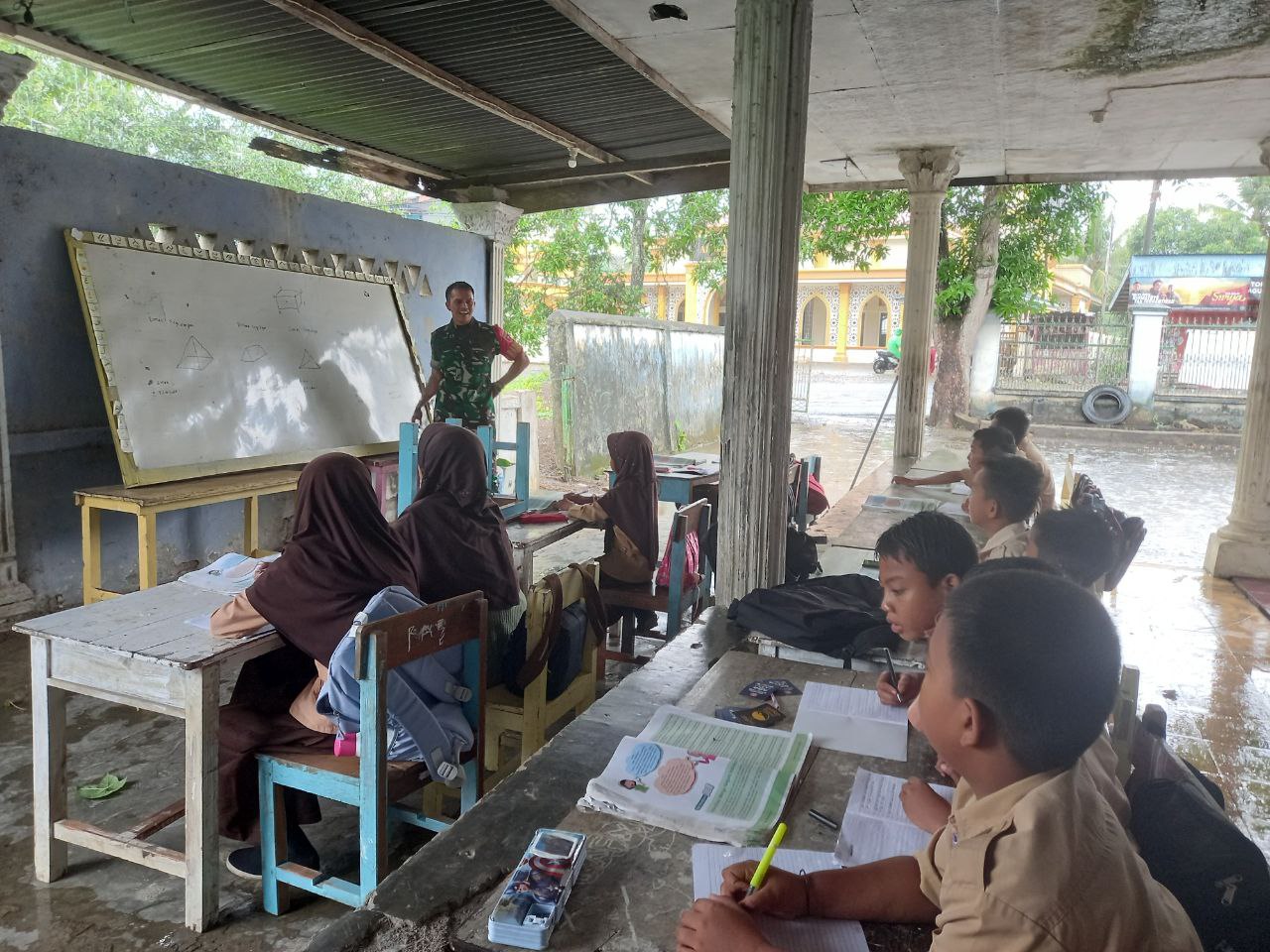 Aksi Kompak Babinsa Koramil 1407-03/Cenrana Dan Siswa SD Inpres Watu : Kerja Bakti Perindah Sekolah