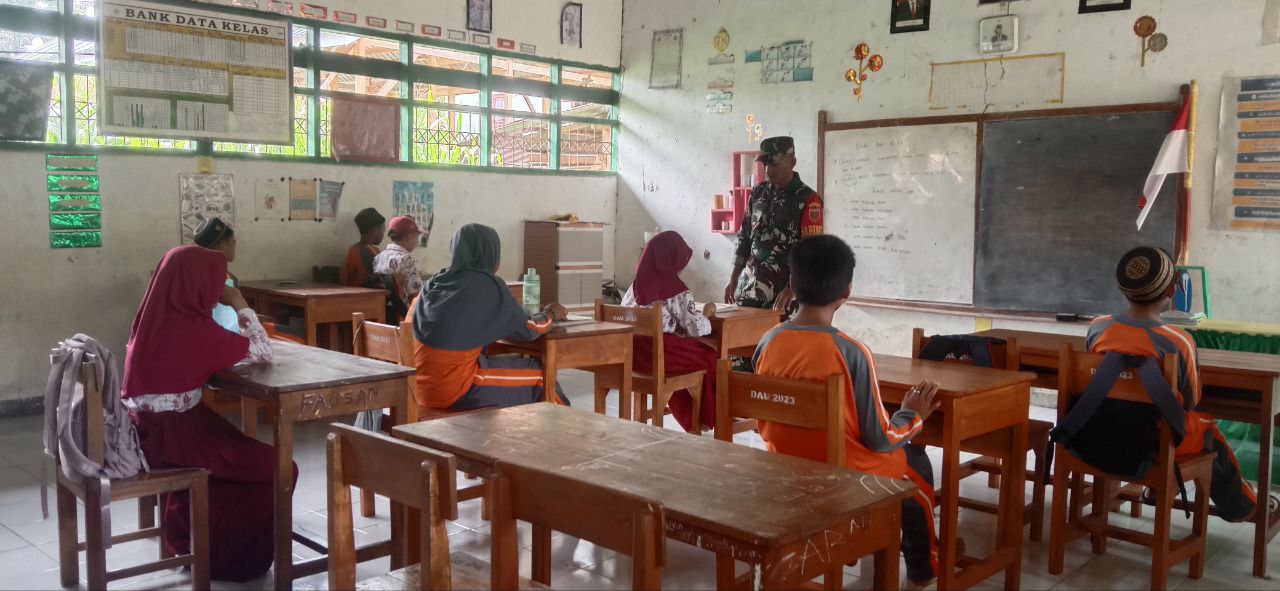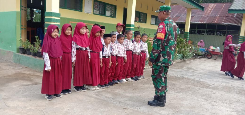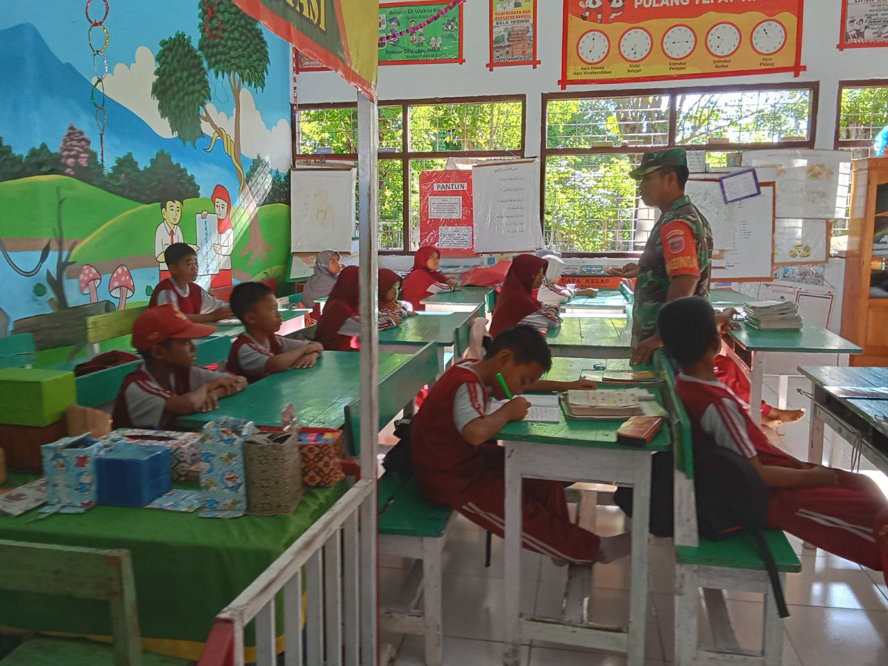 Aksi Kompak Babinsa Koramil 1407-03/Cenrana Dan Siswa SD Inpres Watu : Kerja Bakti Perindah Sekolah