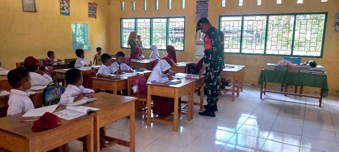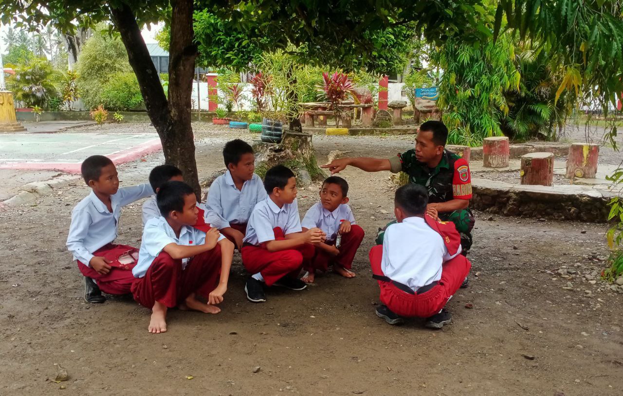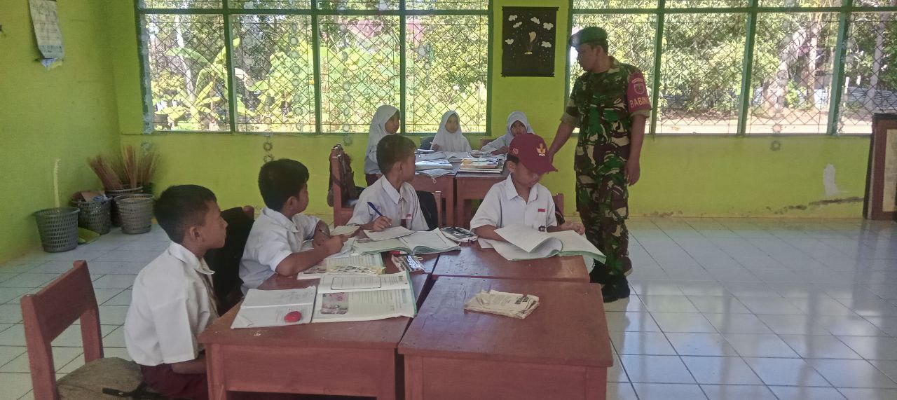Aksi Kompak Babinsa Koramil 1407-03/Cenrana Dan Siswa SD Inpres Watu : Kerja Bakti Perindah Sekolah