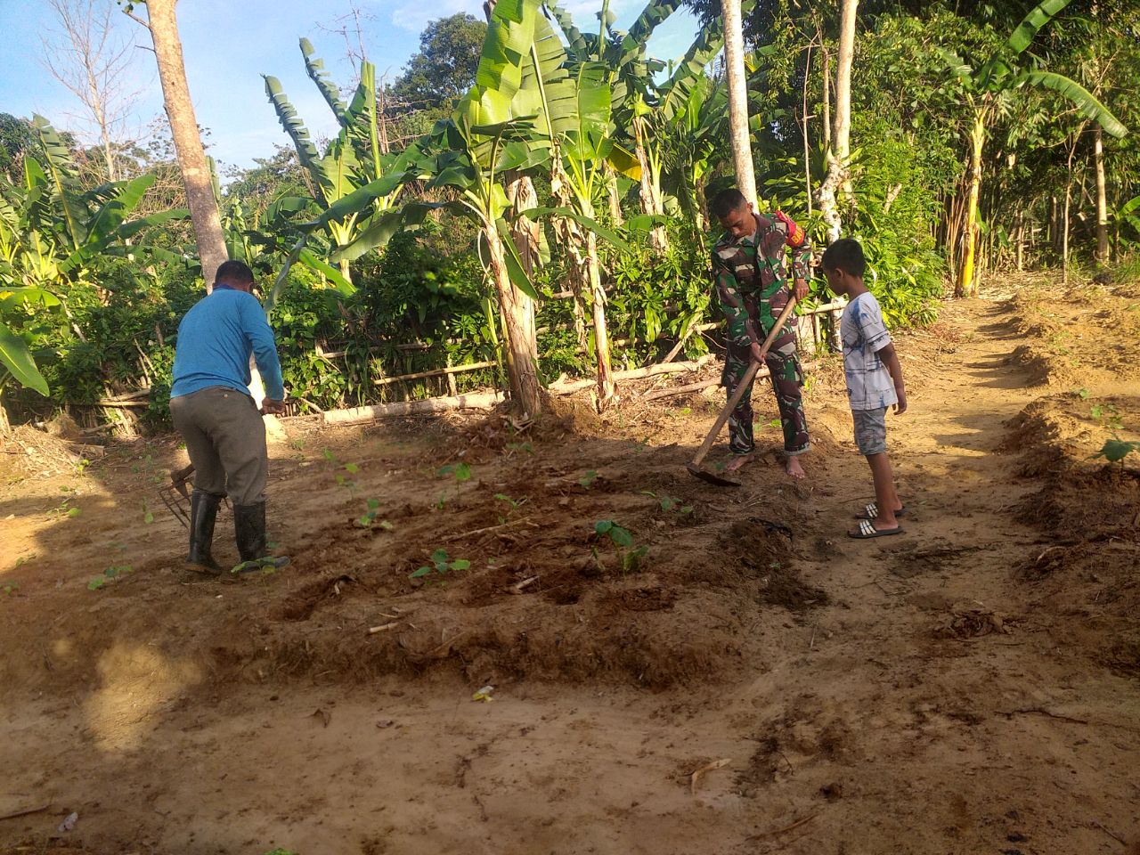 TNI & POLRI Bentuk Dukungan Babinsa Koramil 1407-19/Kahu Dalam Kemandirian Pangan Di Desa Pationgi