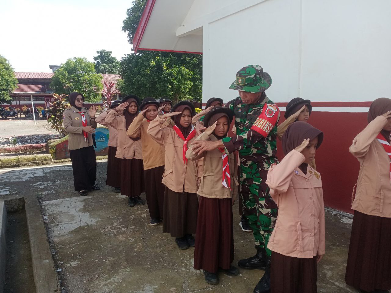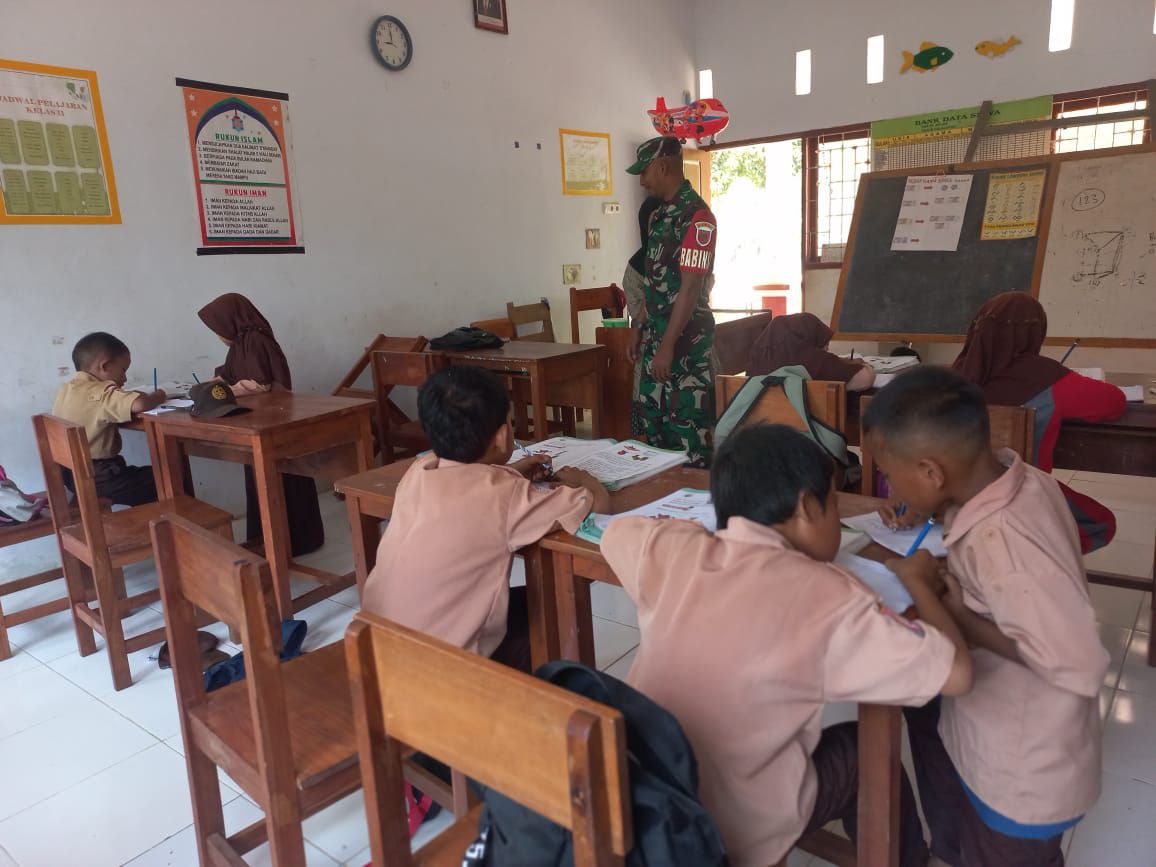 TNI & POLRI Aksi Kompak Babinsa Koramil 1407-03/Cenrana Dan Siswa SD Inpres Watu : Kerja Bakti Perindah Sekolah
