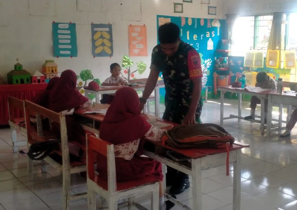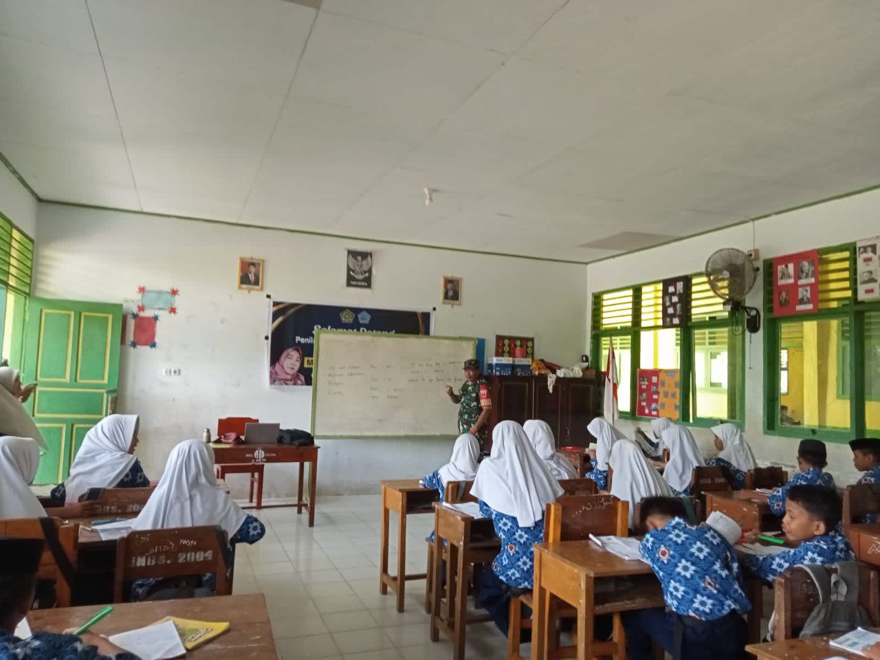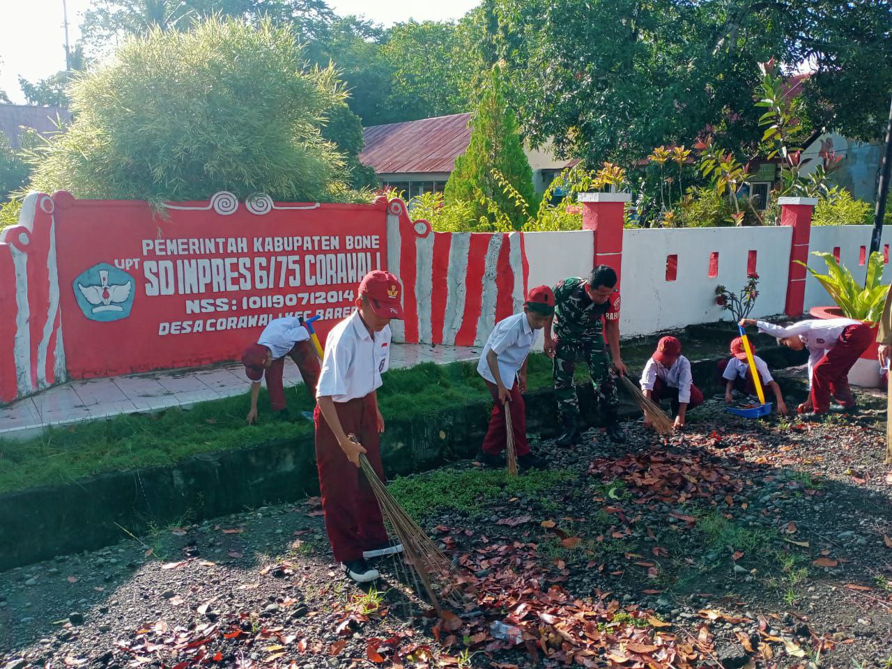 TNI & POLRI Aksi Kompak Babinsa Koramil 1407-03/Cenrana Dan Siswa SD Inpres Watu : Kerja Bakti Perindah Sekolah